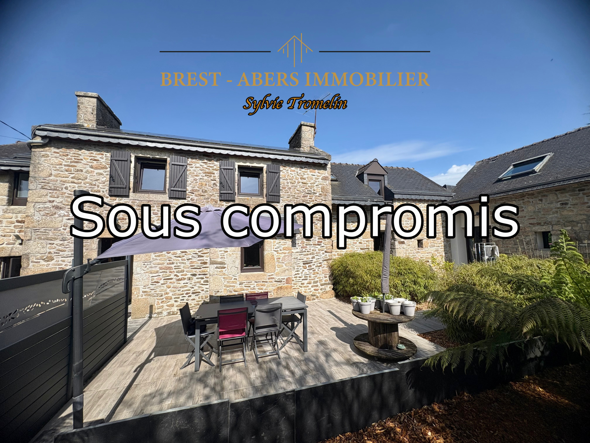 PLOUGUERNEAU, Sylvie TROMELIN BREST-ABERS IMMOBILIER, vous présente cette longère en pierre de 122 m² avec un double garage de 70 m² et un...