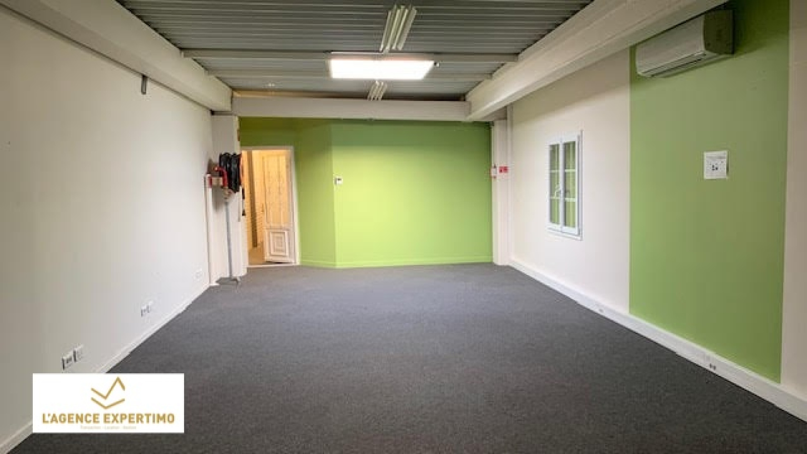 Bâtiment de 2003, vitrine de 8ML, intérieur en très bon état, hauteur sous plafond 6m (actuellement faux plafond à 3M), chauffage, VMC double flux, fermeture PVC ALU double vitrage.