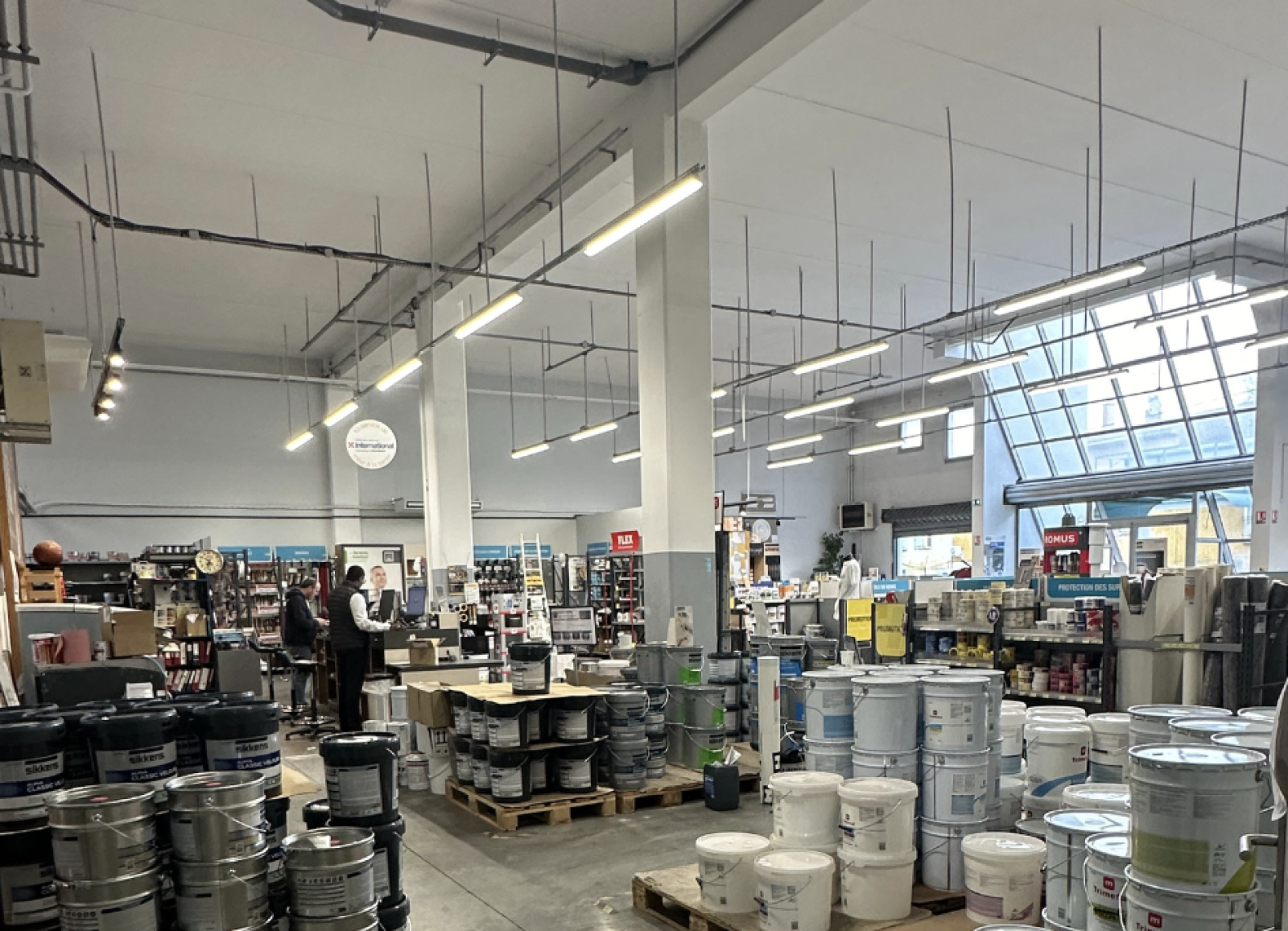 - de deux portes sectionnelles à l'arrière et d'une entrée en devanture commerciale afin de proposer différents espaces (production / stockage / vente) ;