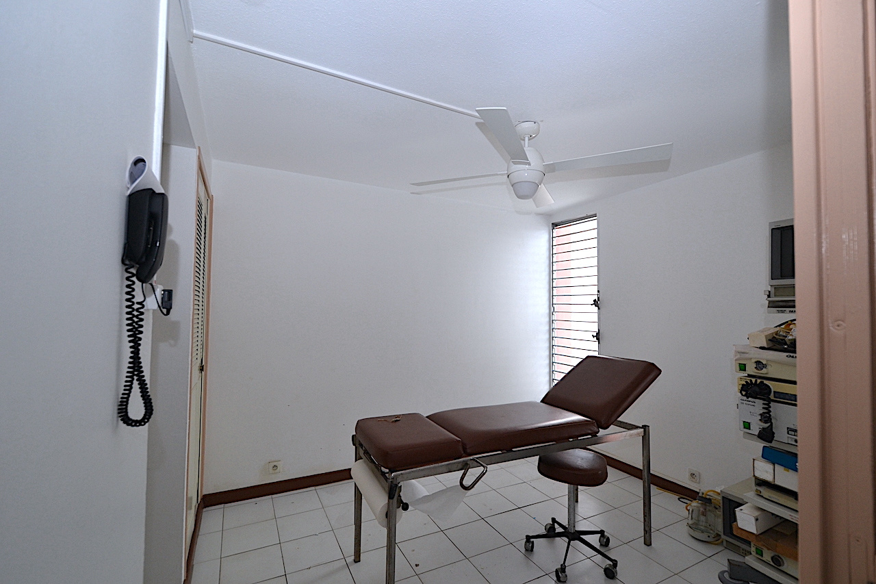 Situé au 9ème étage avec ascenseur d'une tour en plein centre de Pointe à Pitre ce logement utilisé pendant plus de 30 années par un médecin, est proposé exclusivement à la location pour professions libérales. Ce local est déjà configuré comme cabinet médical, ce qui permet une installation rapide sans travaux importants pour un professionnel de la santé ou pour une activité similaire. Il se compose d'une salle d'attente, de trois pièces climatisées, d'une zone d'accueil, d'une cuisine, d'une salle d'eau, d'un wc indépendant et d'une terrasse fermée par un volet roulant. Il est également équipé de nombreux placards. Le fait qu'il soit en hauteur lui permet de bénéficier d'une bonne ventilation et d’une luminosité exceptionnelle. De nombreuses places de parking se situent juste un bas de l’immeuble. Idéal pour médecin, psychologue, orthophoniste, infirmier, consultant, thérapeute, et peut accueillir un ou deux praticiens. Son emplacement stratégique ou la clientèle est particulièrement dense en fait un lieu idéal pour développer votre activité. Disponible le 1er Juin 2026.