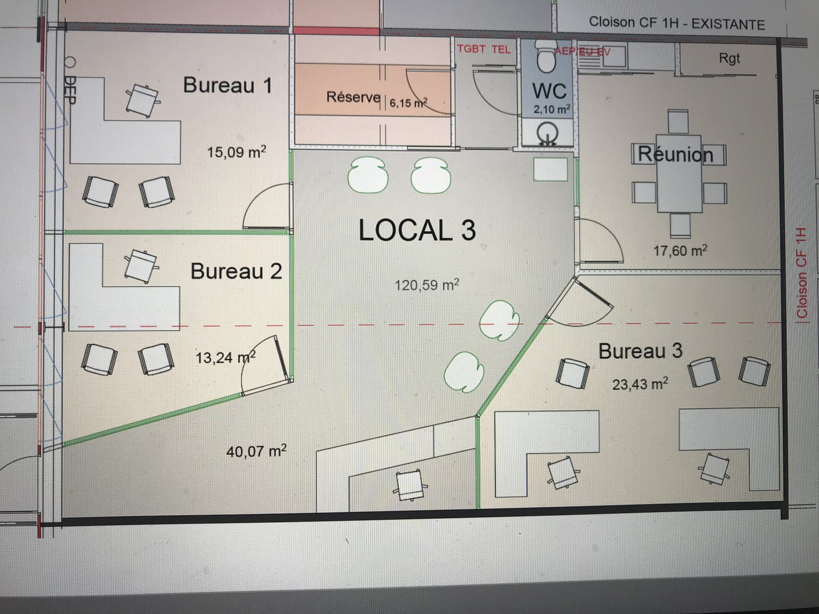 BUREAU AMENAGE AVEC 3 OU 4 BUREAUX SALLE DE REUNION ACCUEIL