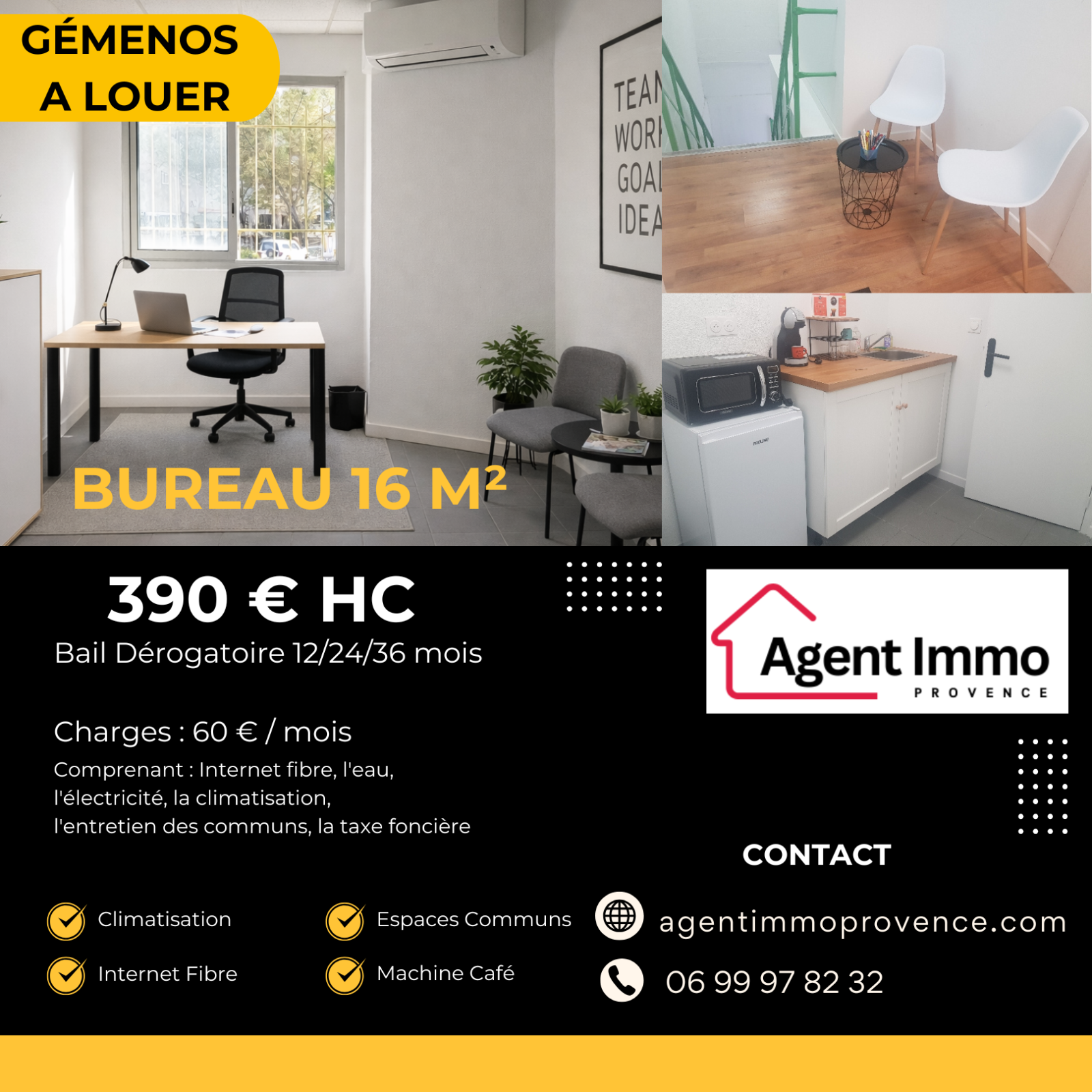 Christophe GRIFFE, votre conseiller en immobilier EXPERTIMO, est à votre disposition au 06 99 97 82 32 pour vous proposer un charmant bureau de 16 m², situé au cœur du Parc d'Activité de Gémenos et à seulement 2 minutes de la ZI Les Paluds.