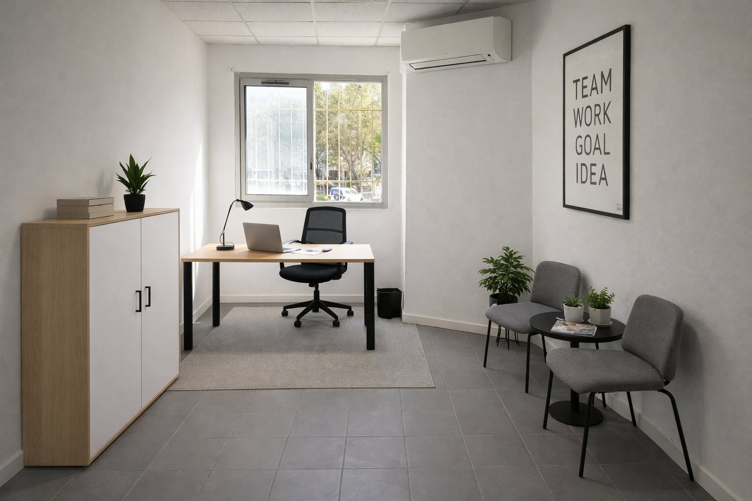 - Bureau a équipé, (le bureau est loué sans mobilier)