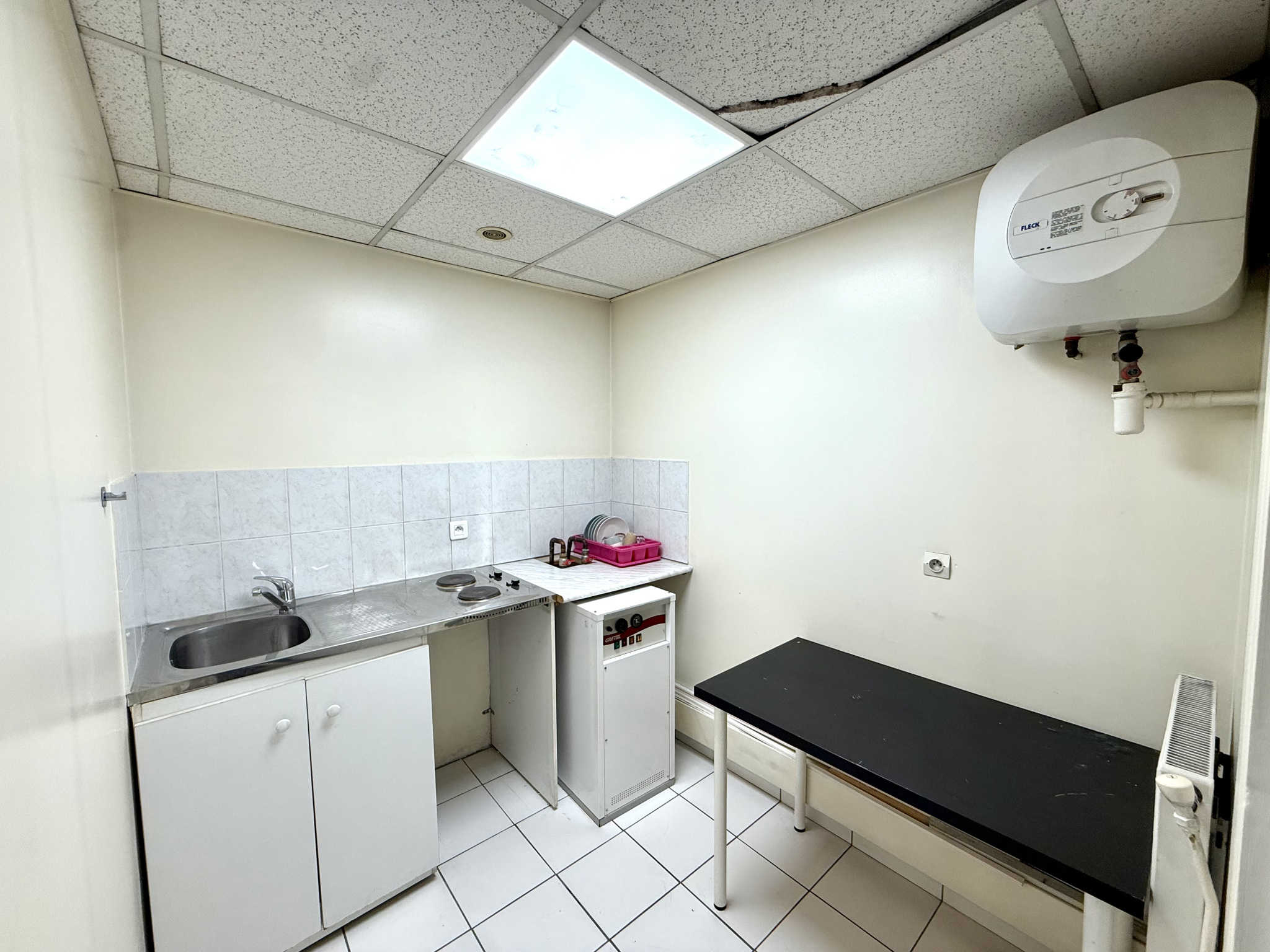 Local commercial avec vitrines sur rue de 72m2 aménagé avec : 5 bureaux + wc avec lavabo + une cuisine