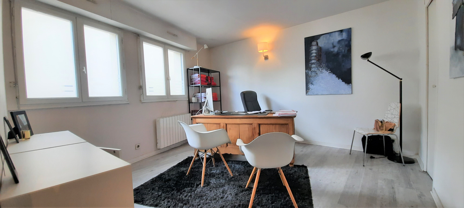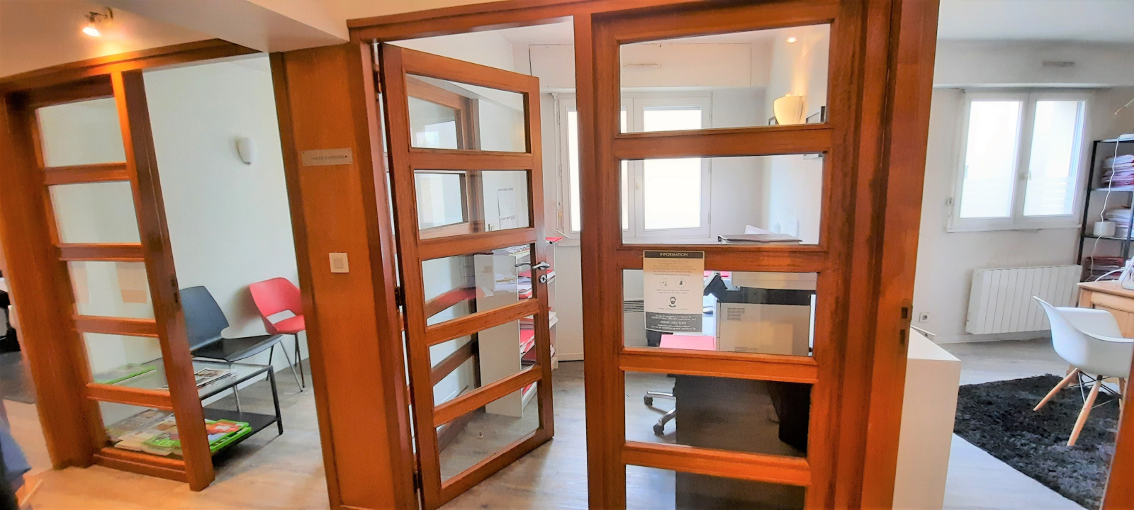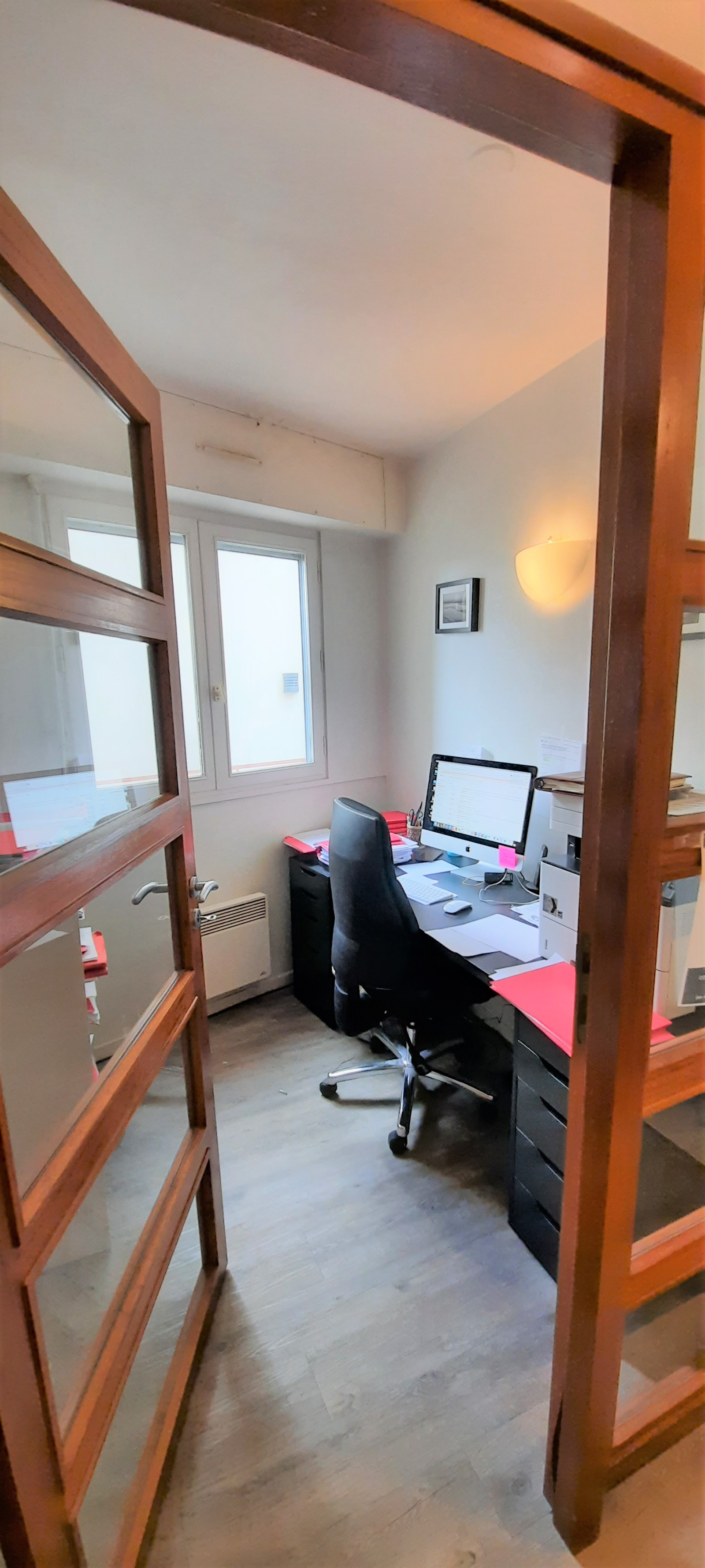 Le bien est composé de deux bureaux de 15m² (dont un avec placards), de deux petits bureaux, d'un accueil, d'un WC et d'un espace cuisine.