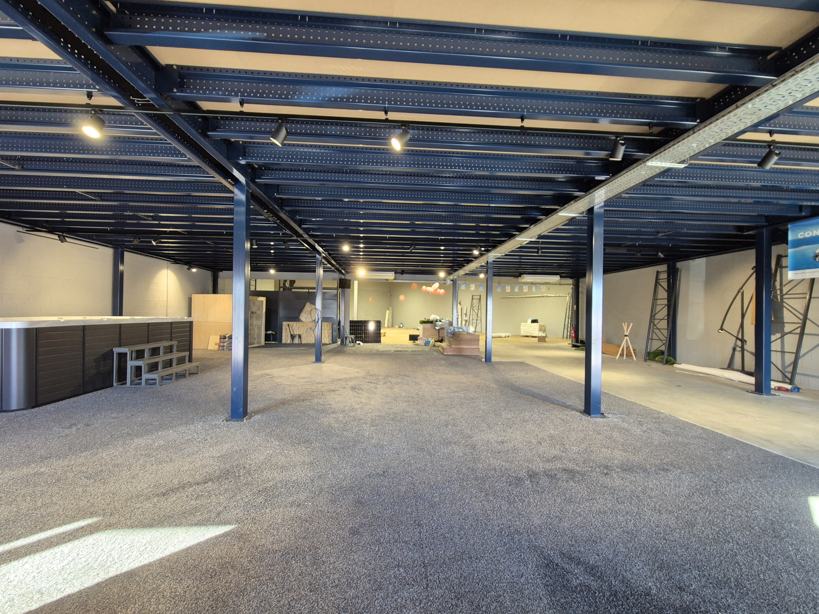 Local RDC 750m² aménagé avec électricité; équipements incendie, local technique informatique, climatisation. + mezzanine 250m².