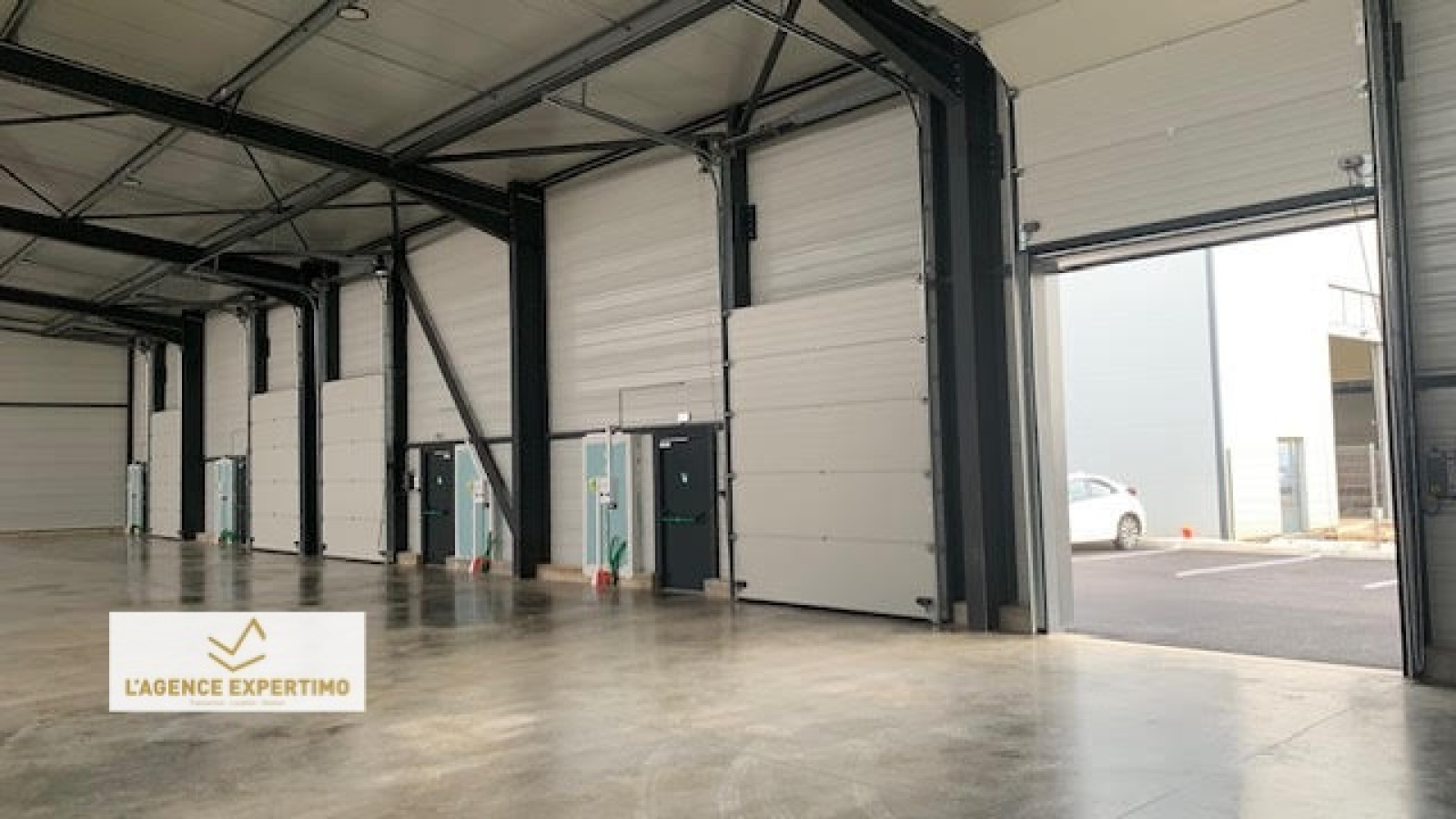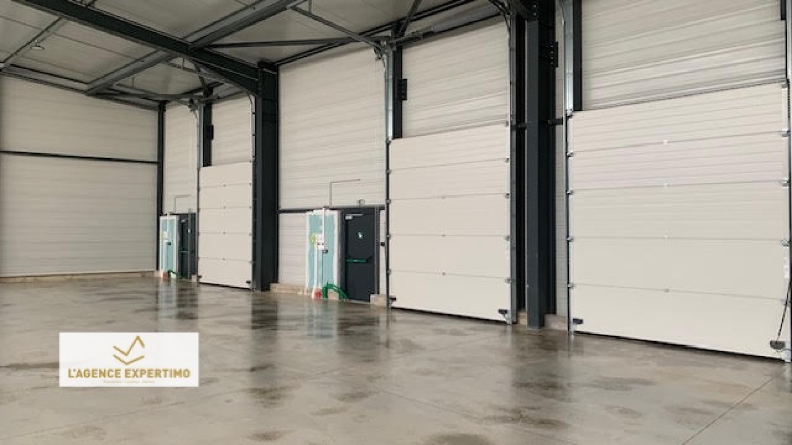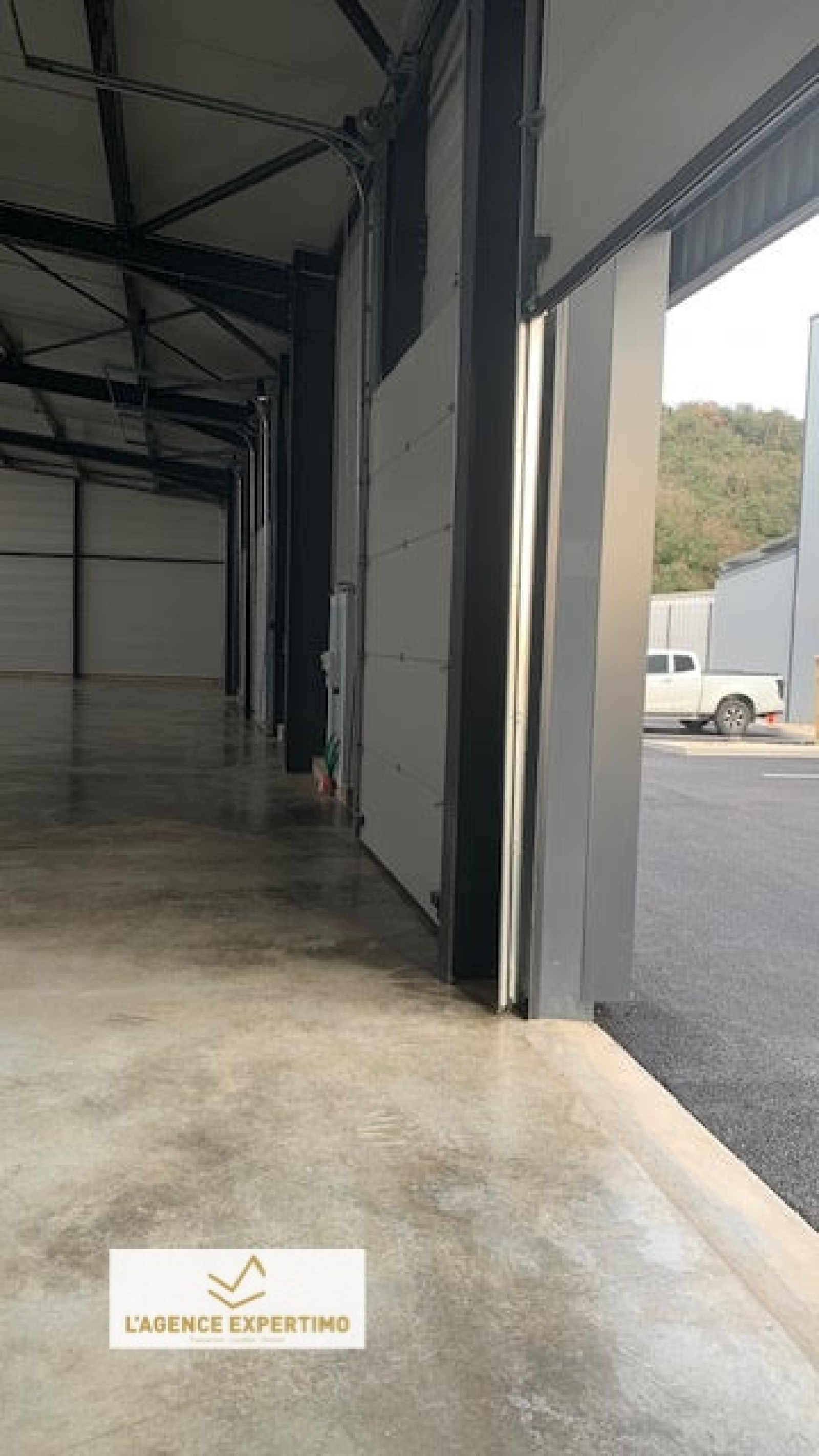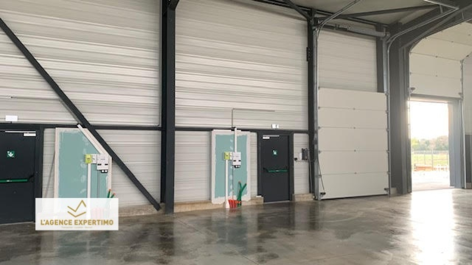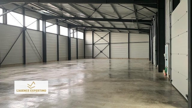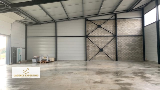 Construction métallique, parois et toit double peau, non chauffé, dalle charge lourde, portes sectionnelles électriques 3,50*3m pour chaque lot avec compteurs individuels. Hauteur sous plafond 8,5m haut de pente, 6M bas de pente, 380v, skydômes,