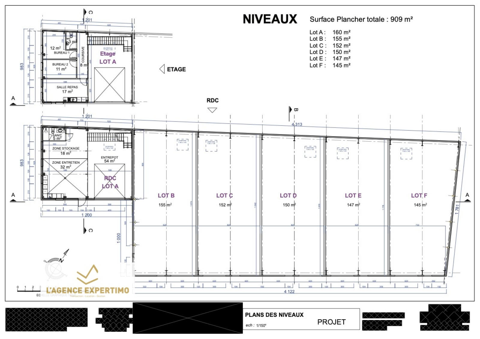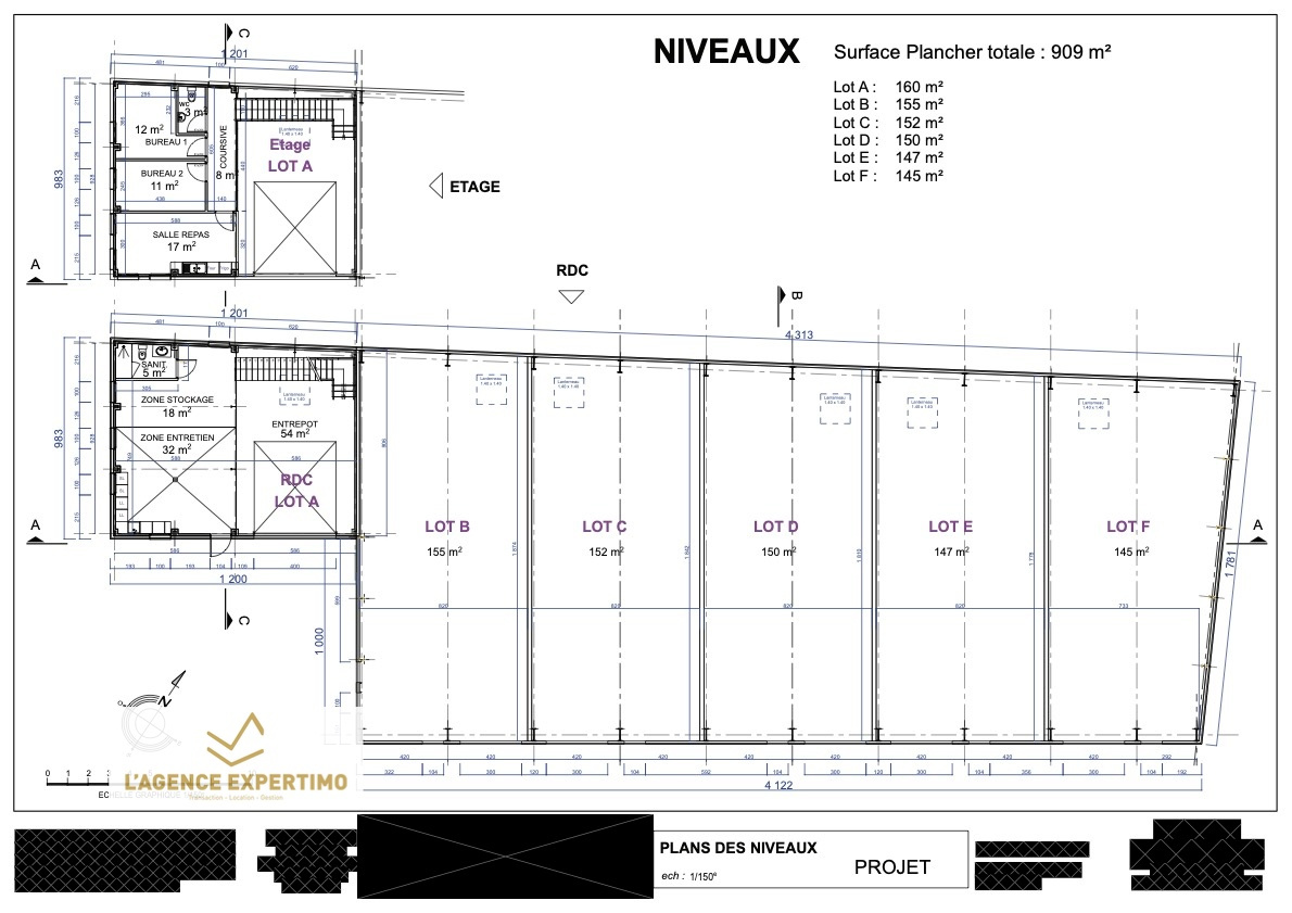 5 lots possibles de 142M2 à 155M2 livrés hors d'eau, hors d'air avec arrivée des fluides.