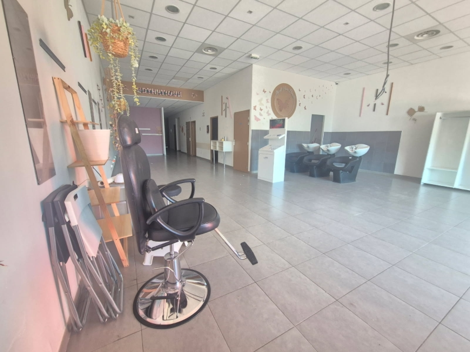 Le local se compose d'un grand espace principal modulable, idéal pour un salon de coiffure, bureau, ou activité de services, ainsi que d'un espace de stockage / sanitaires