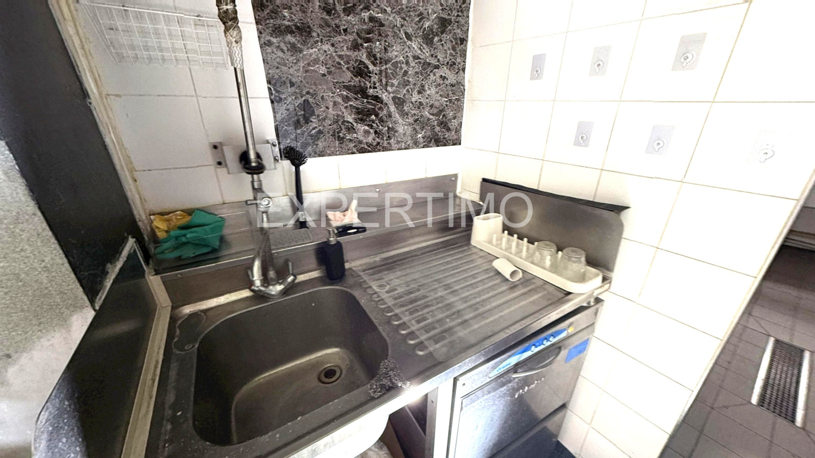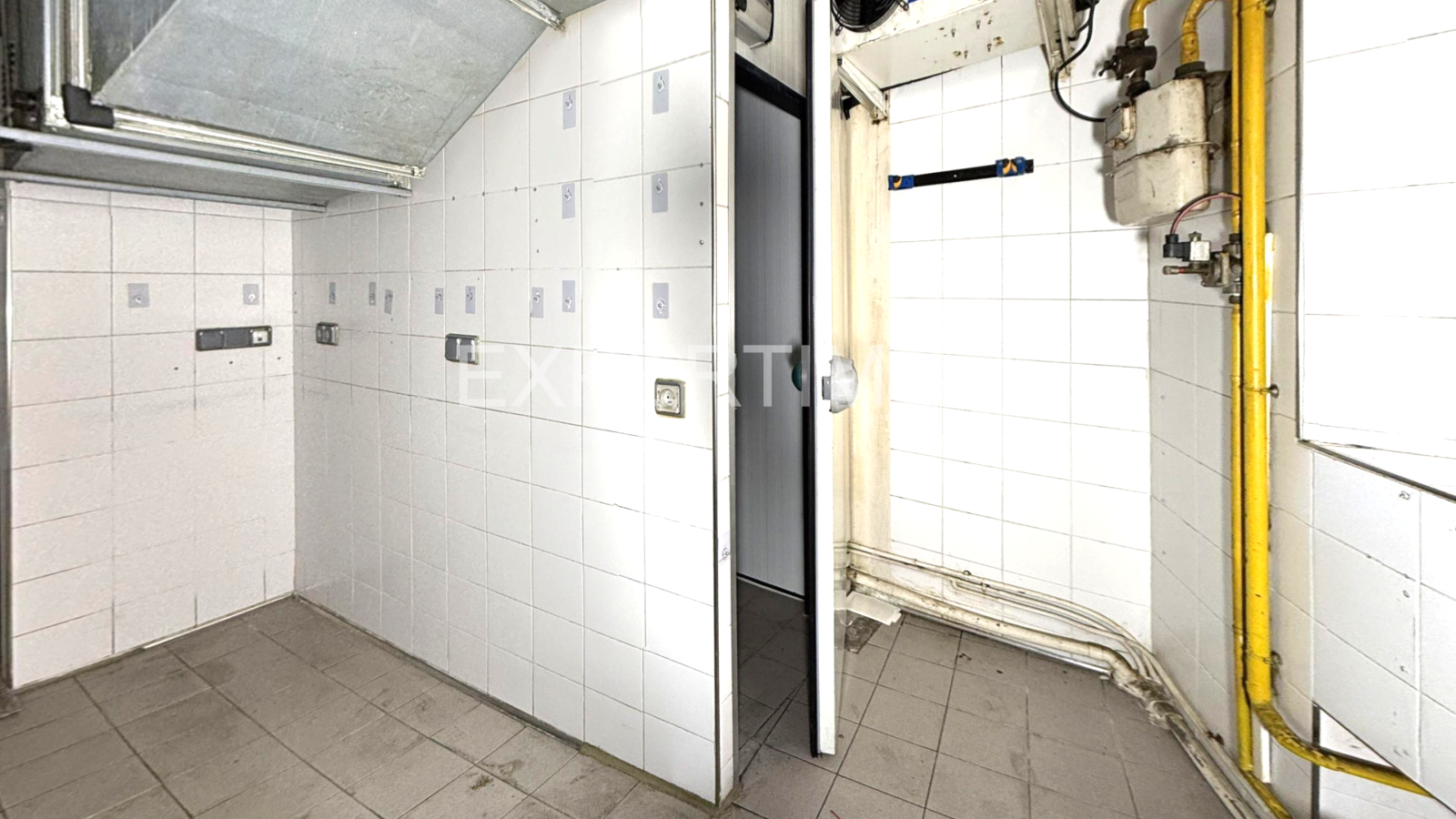 L’étage est aménagé en cuisine professionnelle, équipée d’une chambre froide, d’un lave-vaisselle, d’un évier, et du monte-plat assurant la liaison directe avec la surface de vente.