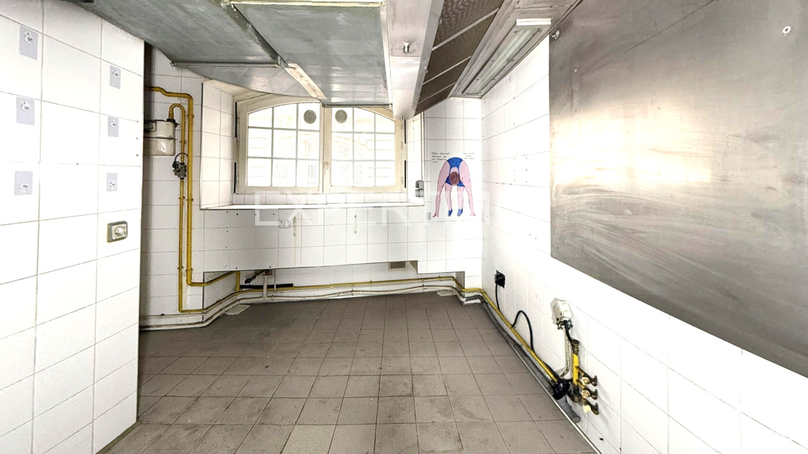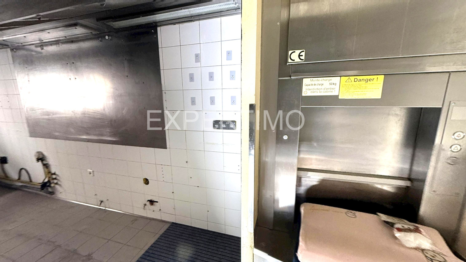 1?? étage (?20 m²) : cuisine aménagée avec chambre froide, évier, lave-vaisselle, et monte-plat vers la salle de vente.