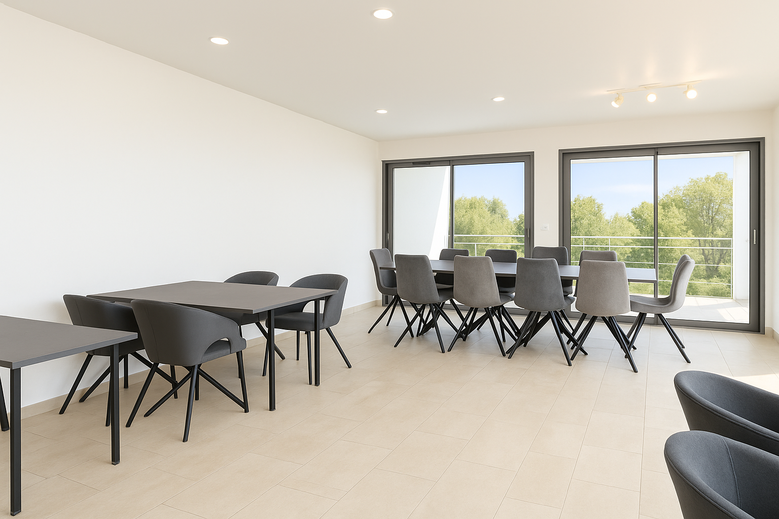 Il est situé au 1er étage d'un immeuble récent, avec un parking pour les clients.