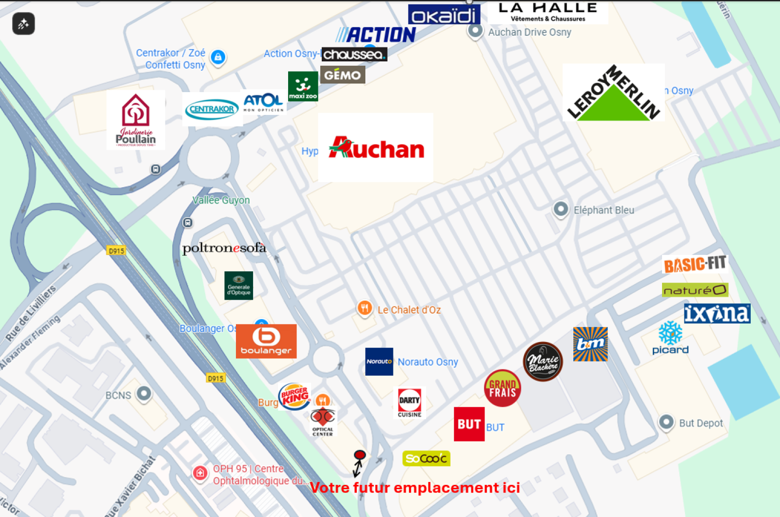 Le retail park de l’Oseraie constitue l’un des principaux pôles commerciaux du Val-d’Oise, générant un flux automobile et piéton très élevé, porté par la présence de nombreuses enseignes nationales locomotives : Auchan, Leroy Merlin, But, Cultura, Boulanger, Intersport, Grand Frais, Centrakor, Maxi Zoo, Picard, La Halle, Action, etc.