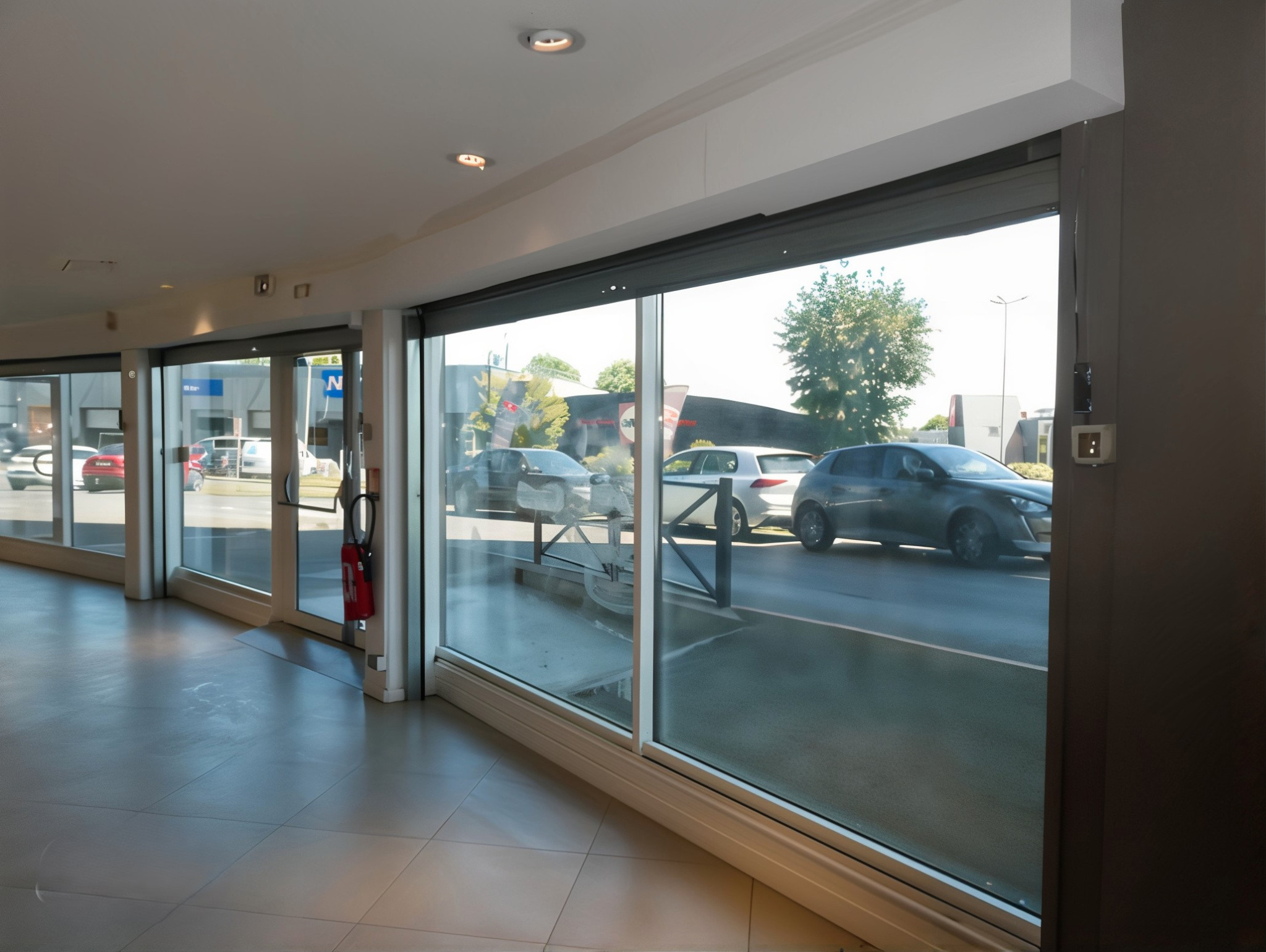 Local situé en angle de bâtiment, offrant un fort impact visuel grâce à une large façade vitrée.