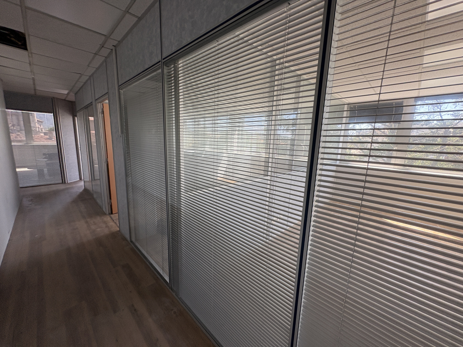 Au 1er étage avec ascenceur (PMR), profitez d'un très bel espace cloisonné mais modulable de 186m2 + 19 m2 d'espaces communs (WC et Ascenseur PMR). Les bureaux disposent de cablage RJ45, de climatisation gainable réversible, d'un espace cuisine, de salles de réunions et de bureaux indépendants, d'ine issue de secours (pour ERP), de double vitrage et de cloisons vitrées comprenant des stores intégrés. En prime, les locaux sont lumineux, calmes et situés dans une zone à la fois très accessible mais cerclée de nature.