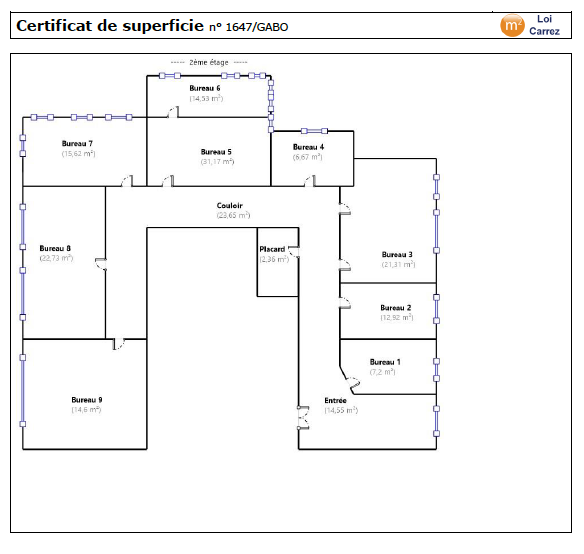 - 98,65m2 (bureaux 5, 6, 7, 8 et 9) = loyer de 1750€/HT/mois (5 bureaux)
