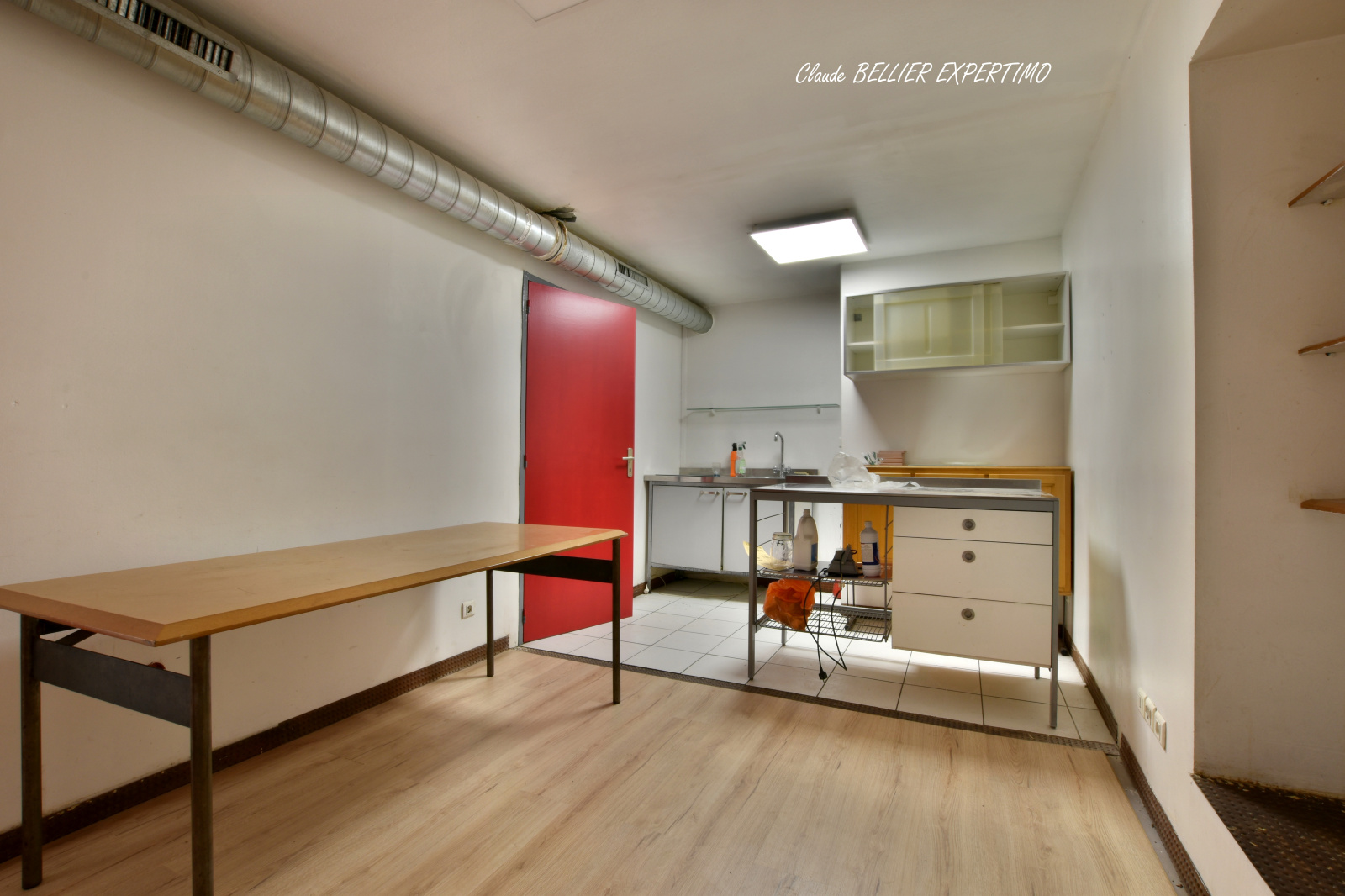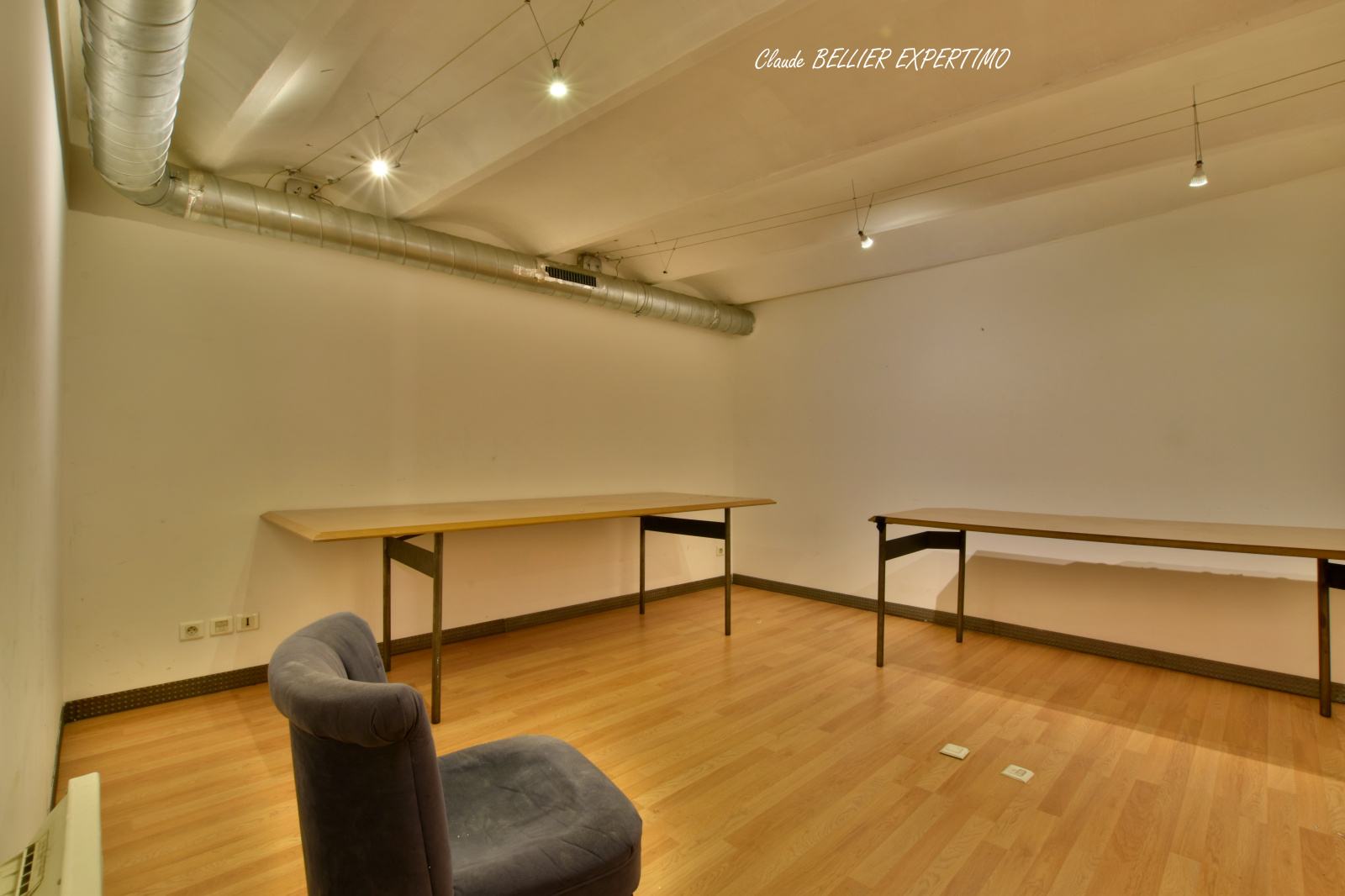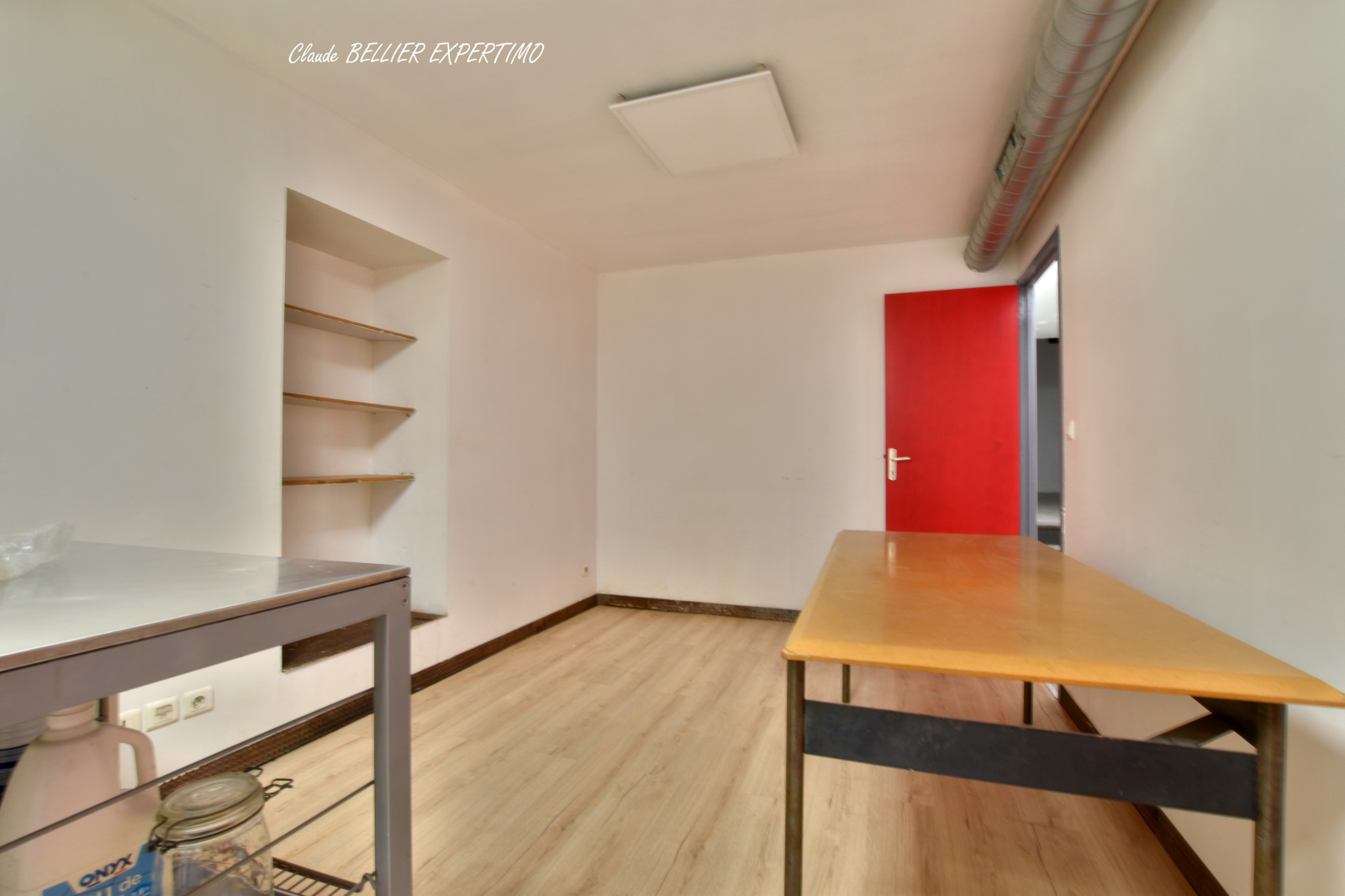 Le local peut être utilisé de façon mixte. Les locaux, se situant sur 2 niveaux, totalement indépendants du reste de l’immeuble. Ils sont organisés en une entrée de 9.22 m² pouvant accueillir le public, faisant face à un bureau de 7.7 m2 et une salle avec coin cuisine de 14.03 m2. Un WC, un second bureau de 9.38 m2 et un atelier de 43.31 m2 complètent le rdc.