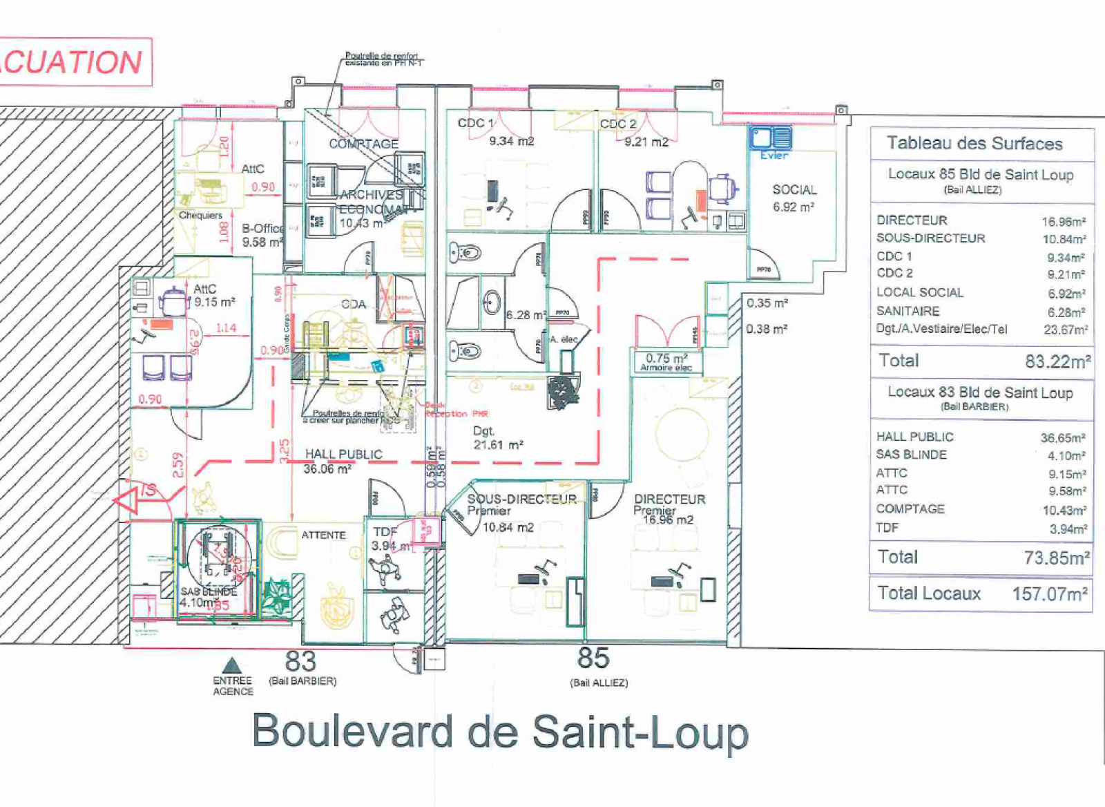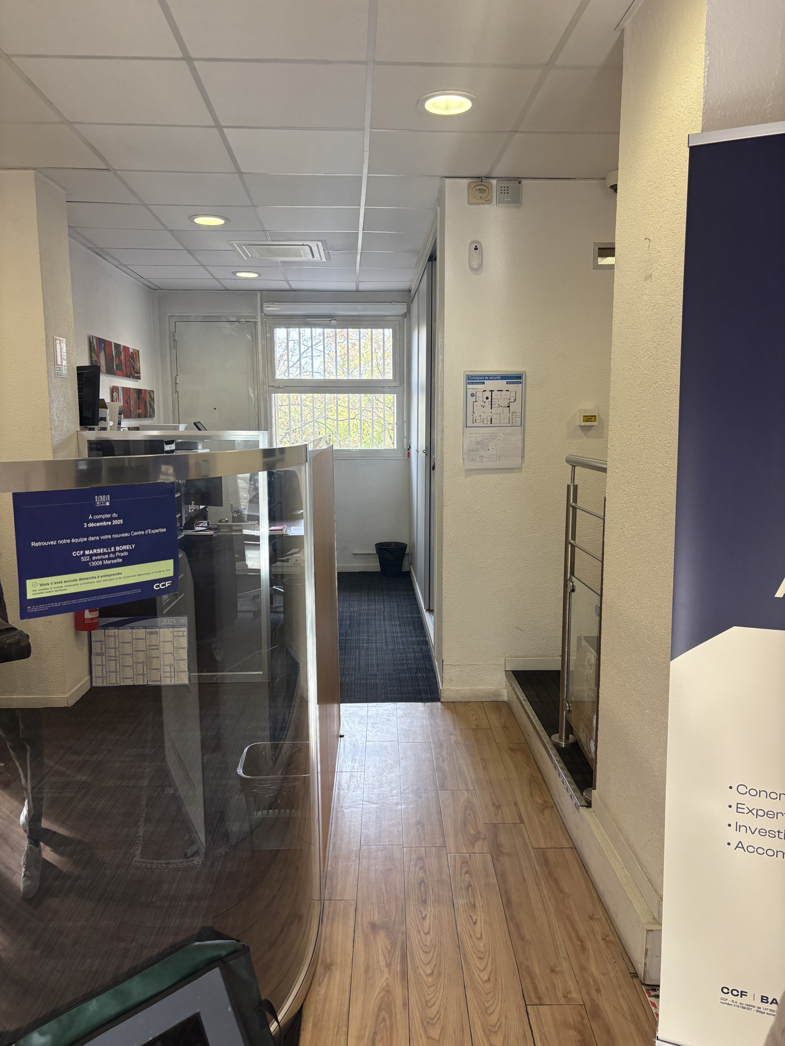 Actuellement occupé par une Banque jusqu'en Mars 2026, le local comporte :
