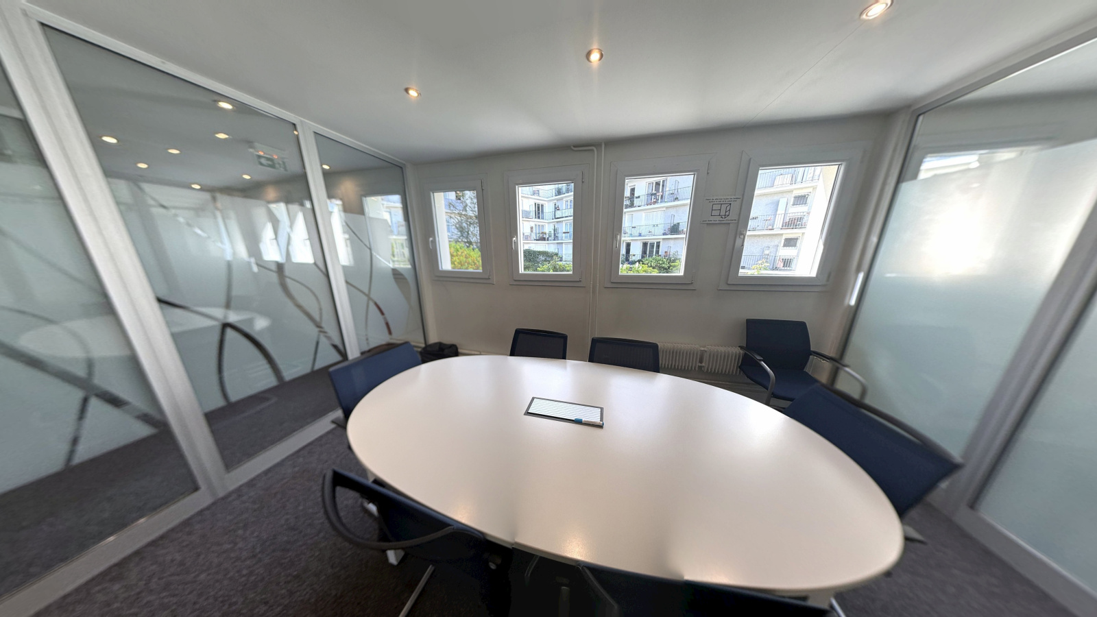 Espaces communs : 2 salles de réunion, kitchenette, sanitaires, espace d’accueil