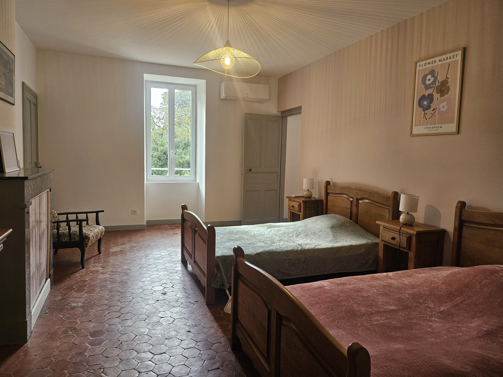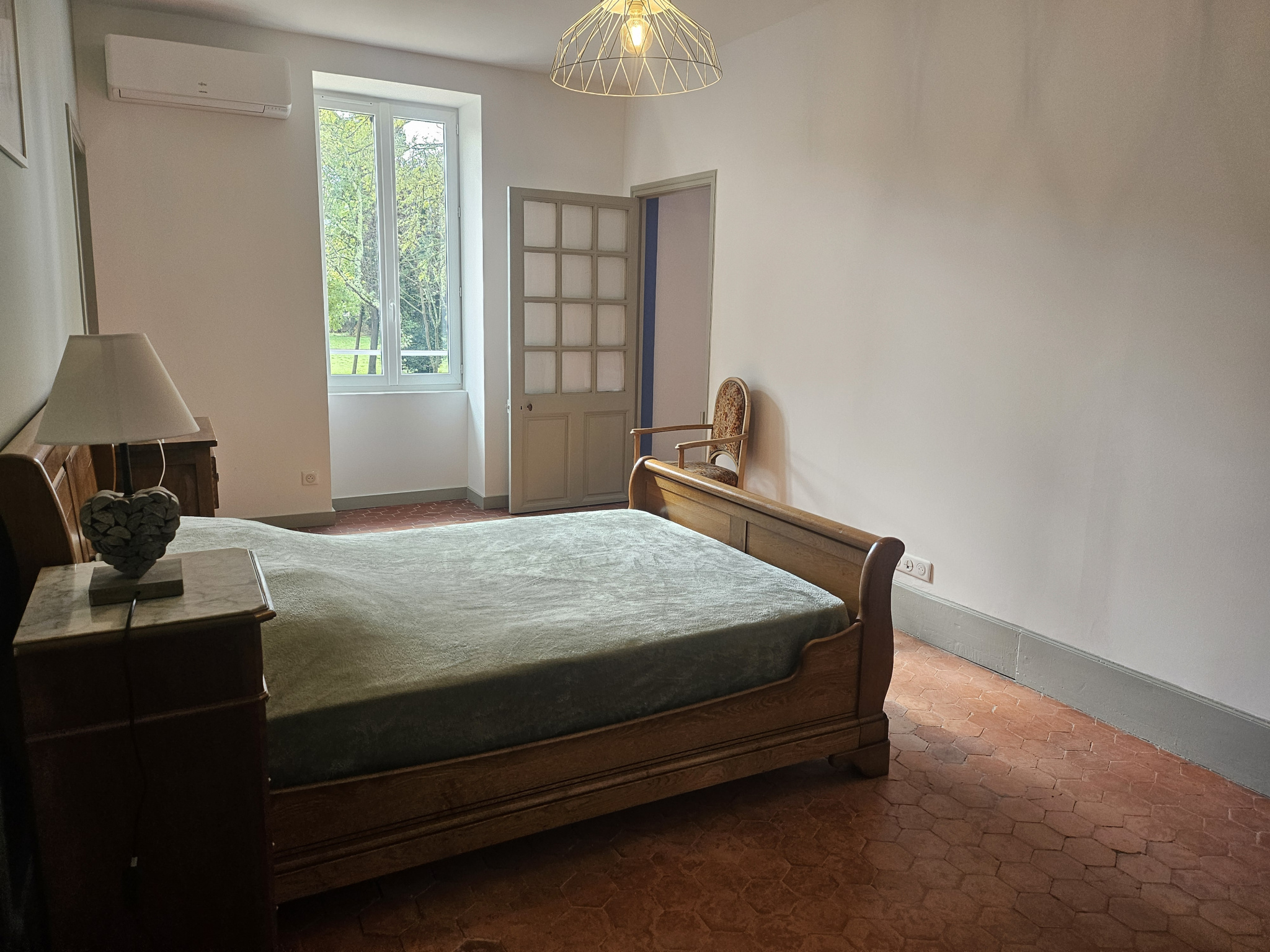 À l’étage, l’espace nuit se compose de quatre chambres aux beaux volumes, dont une suite parentale, ainsi qu’une salle de bain.