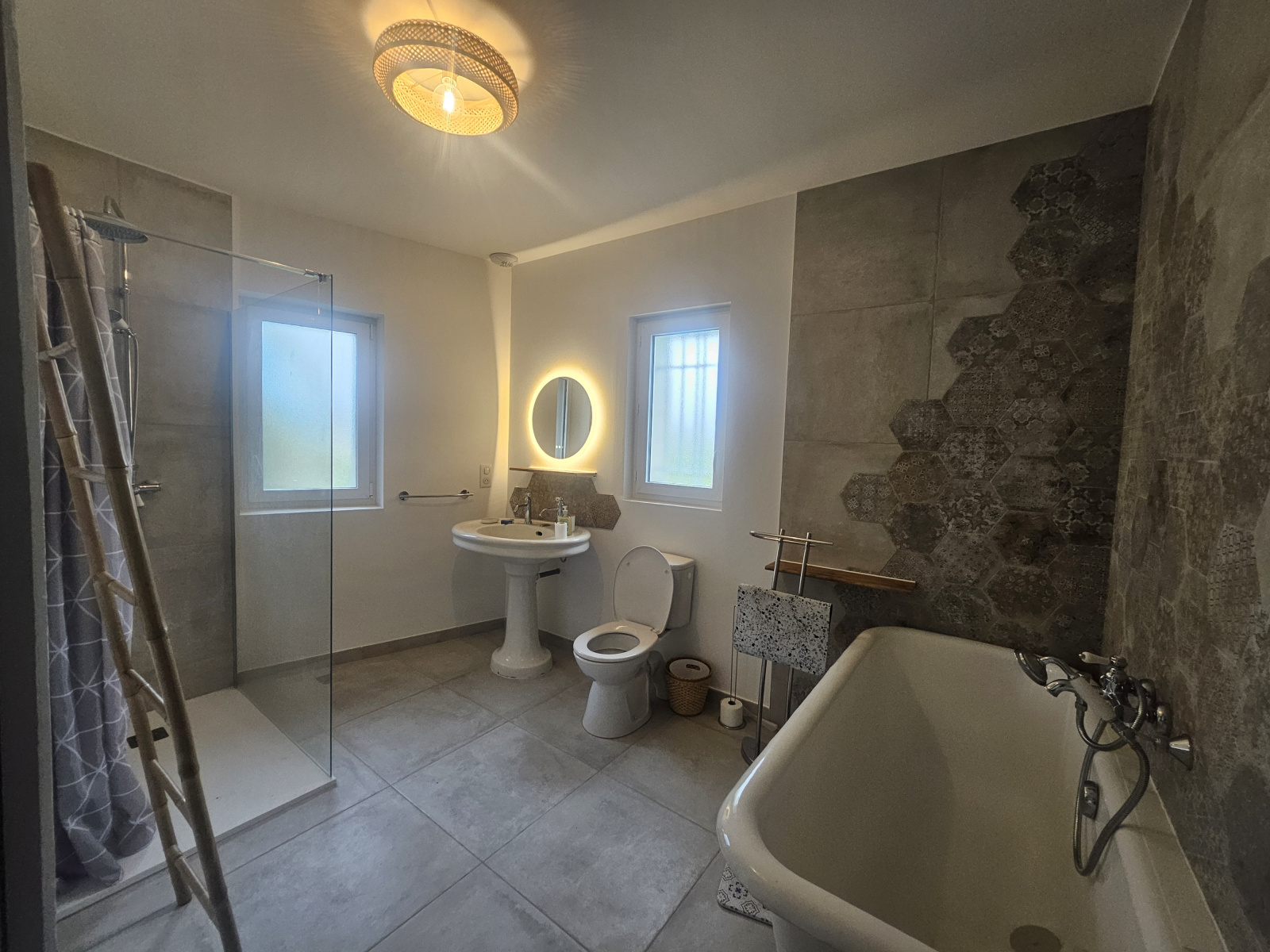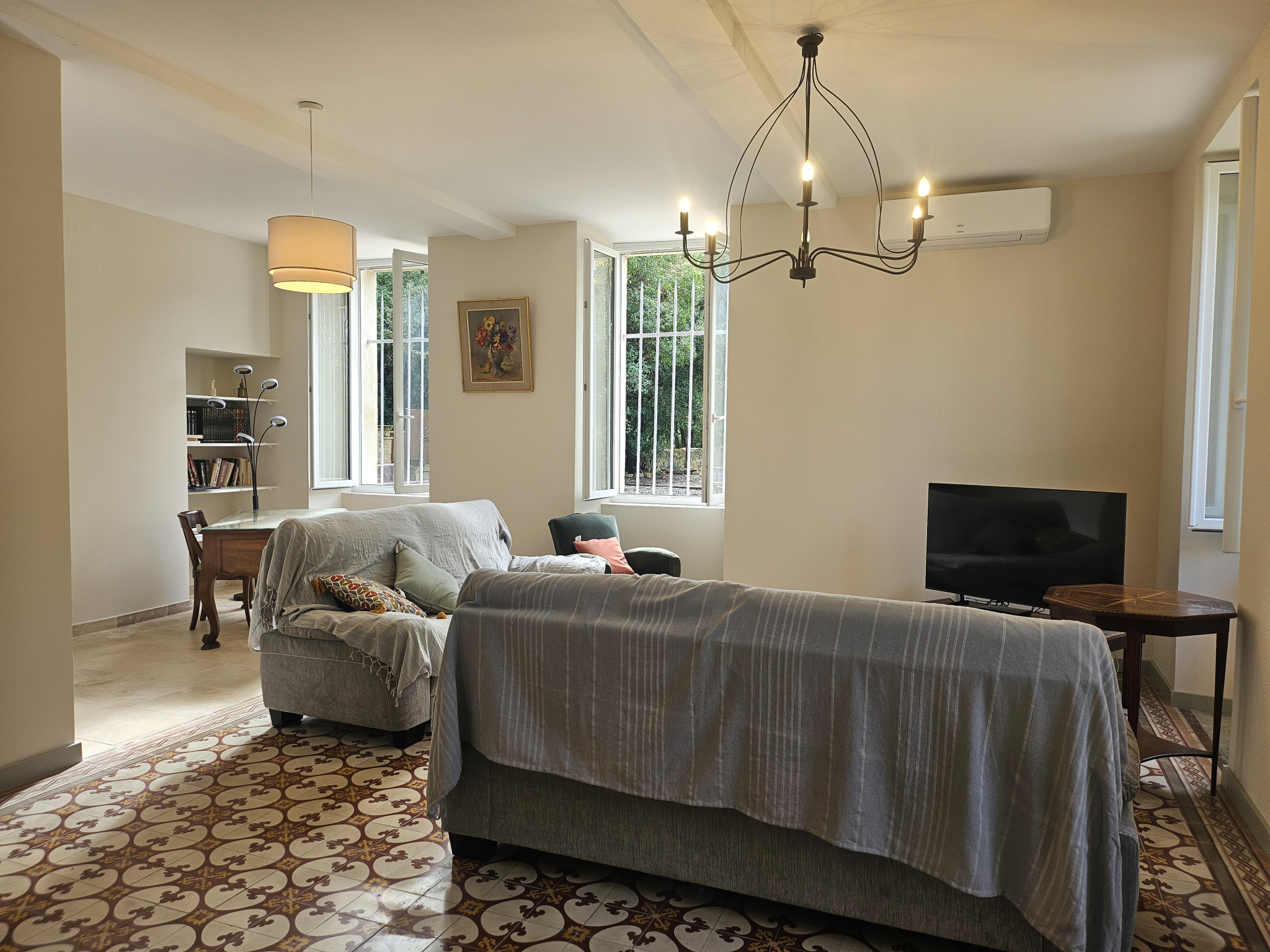 La propriété accueille deux autres logements indépendants, dont un mitoyen d’un côté, garantissant un environnement organisé et harmonieux tout en préservant l’intimité de chacun.