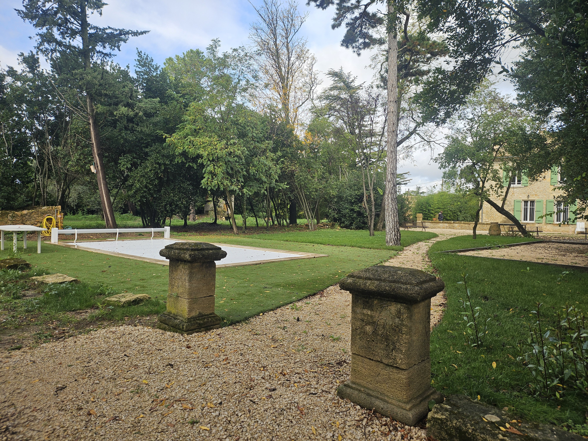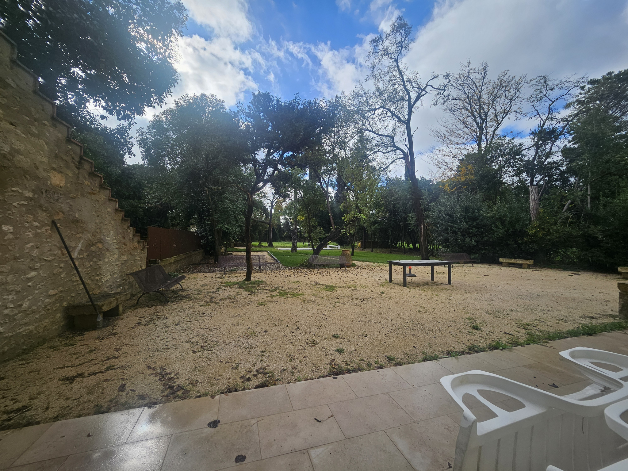 Les extérieurs, particulièrement privilégiés, offrent une terrasse, plusieurs places de stationnement, un très grand jardin non clôturé, une piscine et un terrain de pétanque, garantissant un cadre de vie convivial.