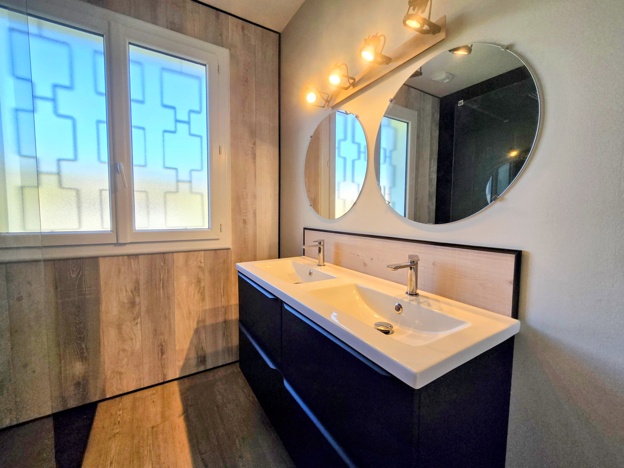 - rdc: garage communiquant avec la maison, belle entrée avec placards, chambre et salle de bains.