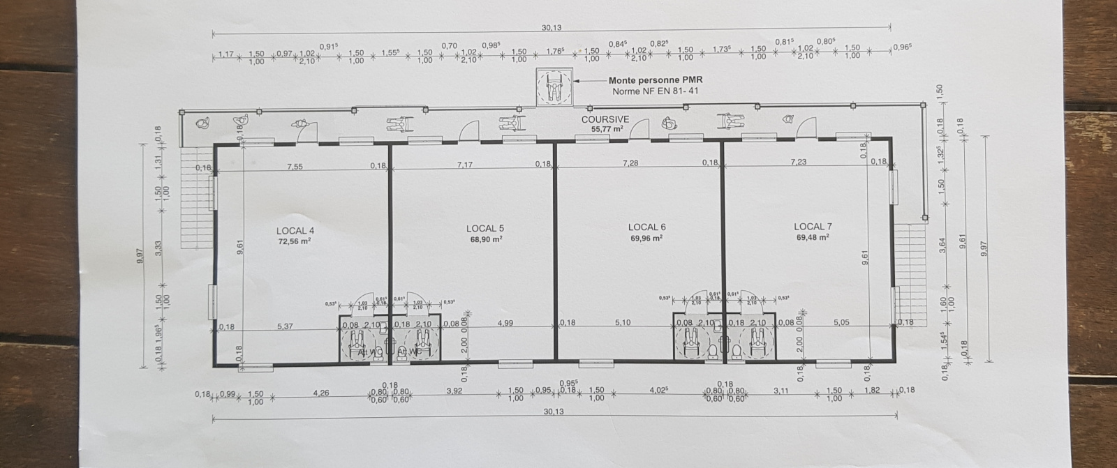 Reste 4 locaux au 1er étage, livrés carrelés faux plafond, ascenseur plus parking,Â