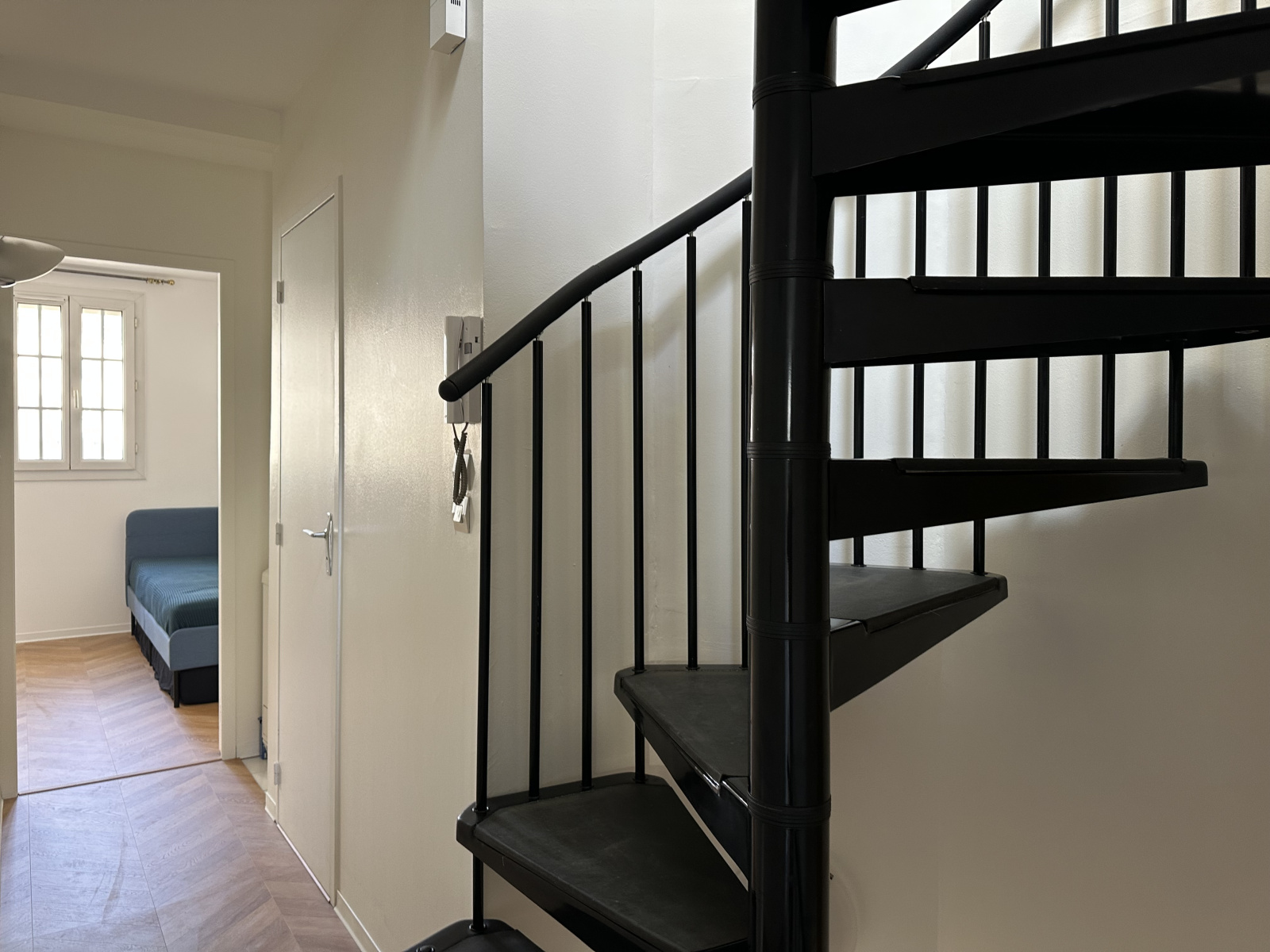 Au niveau 2, vous accéderez par un escalier en colimaçon de style industriel à une suite parentale avec dressing et salle de bain privative donnant sur un charmant petit balcon avec vue sur la cour de la copropriété.Un seconde chambre et des toilettes séparées complètent cet étage.