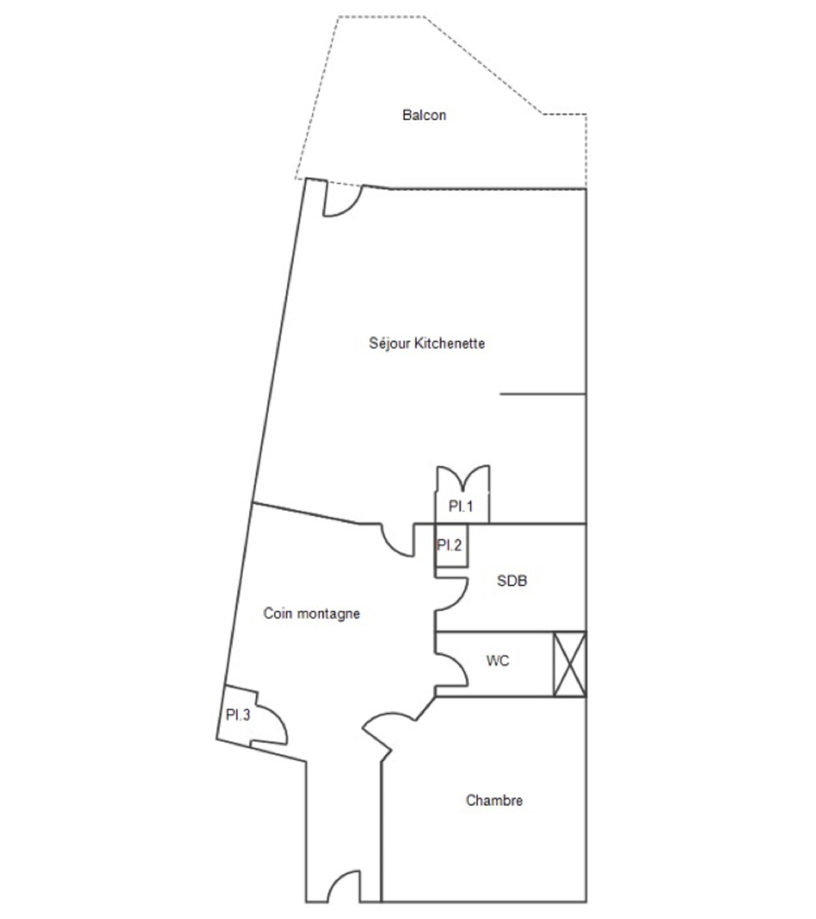 Proximité immédiate du Club Méd. Une chambre fermée double couchage, un coin montagne avec lits à étage, une pièce à vivre avec kitchenette et canapé lit pour un couchage de qualité.