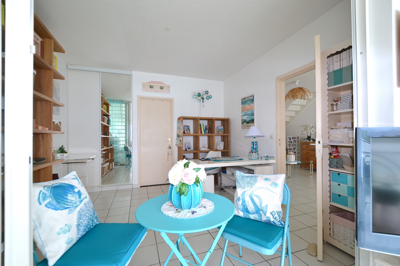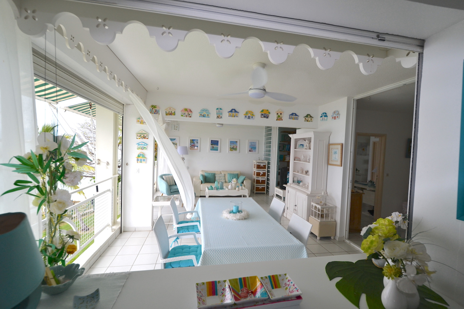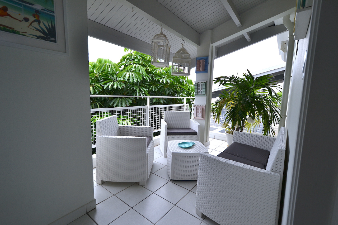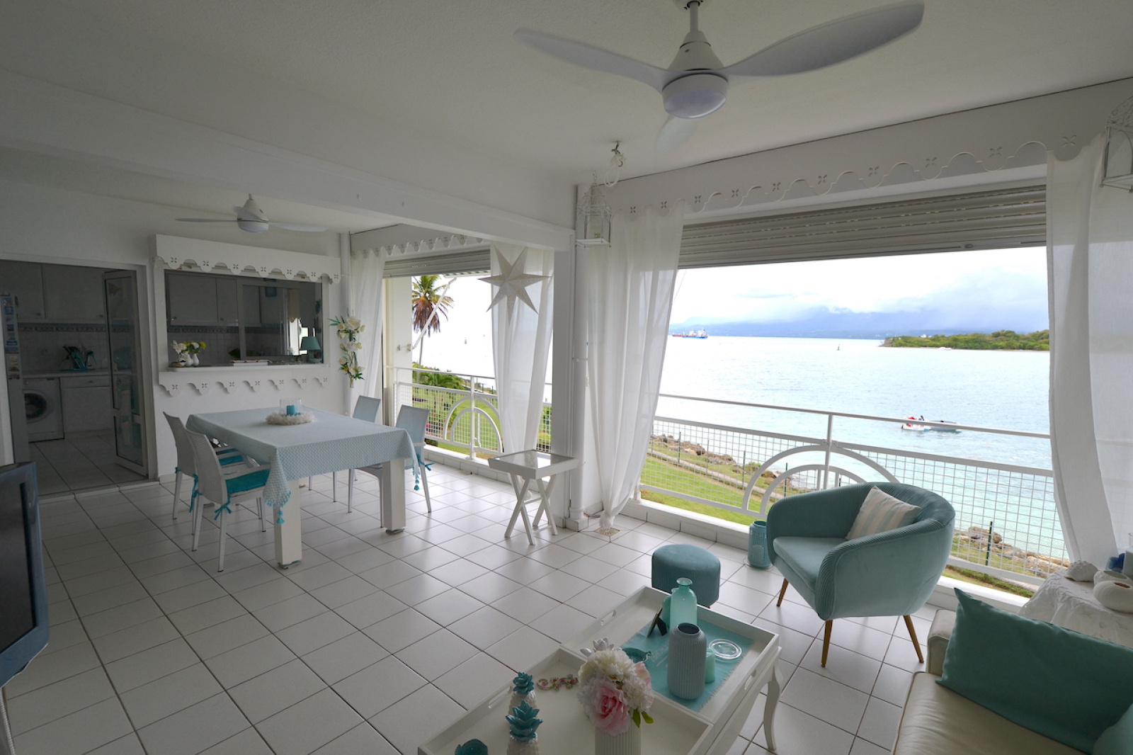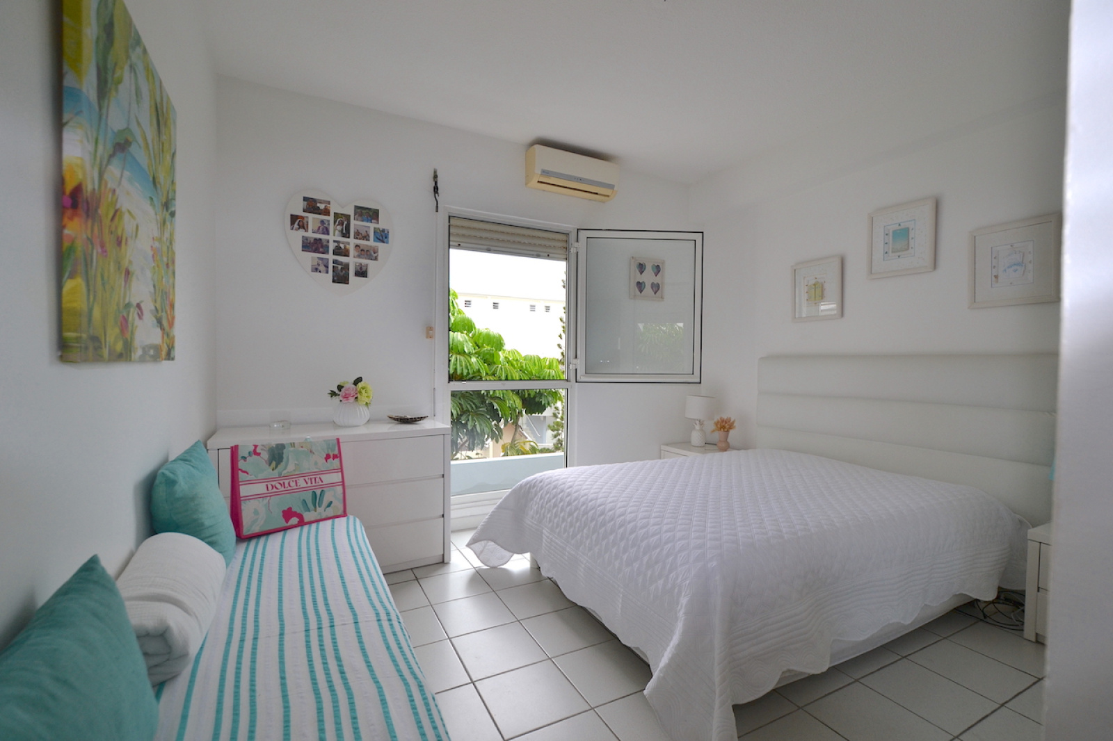 Appartement situé au second et dernier étage face à la mer, sans vis à vis. Il est composé d'un balcon couvert, d'un séjour, d'une chambre climatisée avec placards et sa salle d'eau attenante, d'un wc indépendant, d'une cuisine équipée, d'un bureau non climatisé et d'une très grande terrasse. La résidence est très bien entretenue et vous disposez d'une place de parking sécurisée. Le logement est équipé d'une citerne tampon, et il est disponible: Du 10 avril 2026 au 30 octobre 2026. Le loyer est de 1400e/mois charges sont comprises eau, internet et edf.
