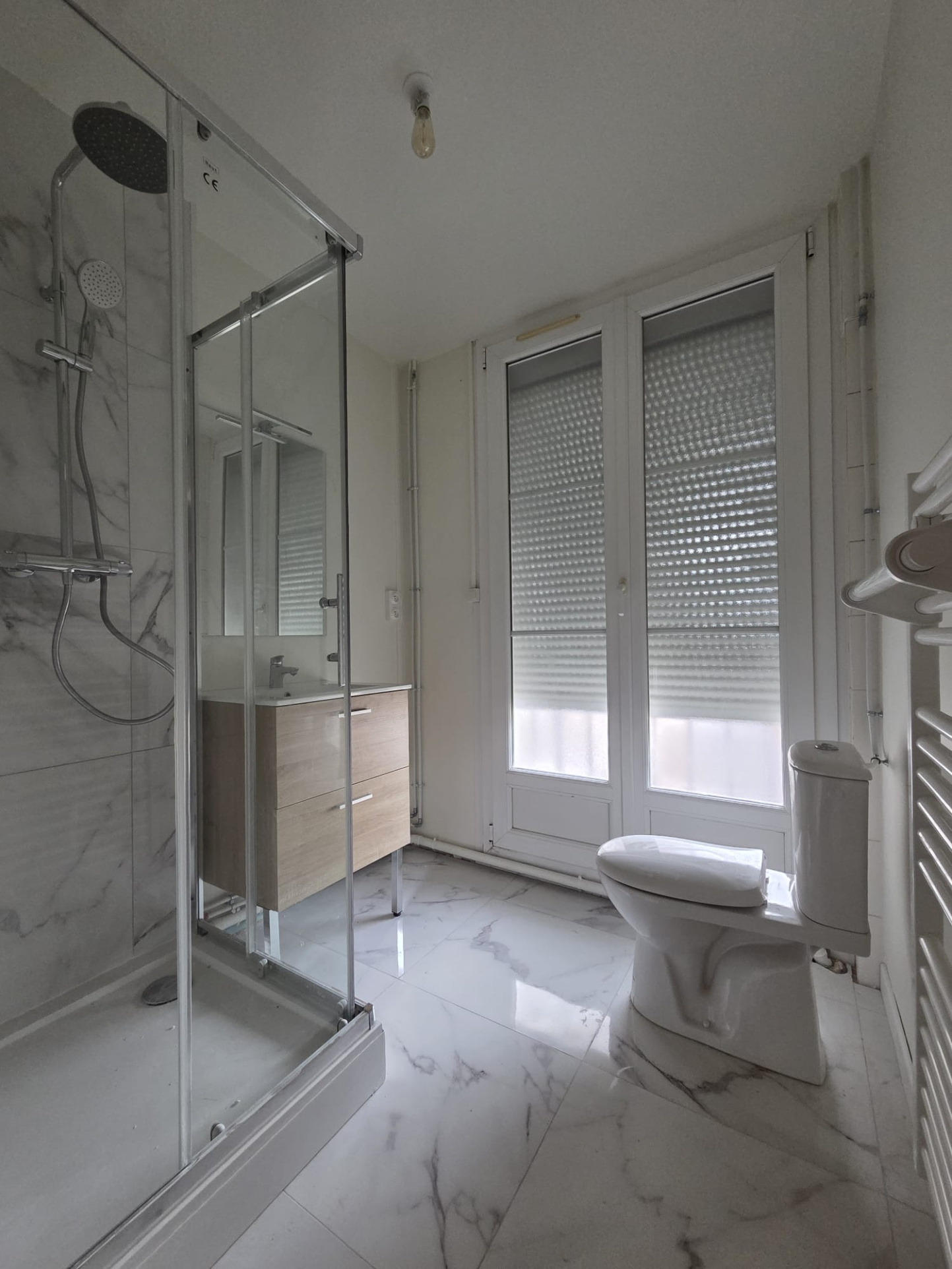 entrée, salon séjour, cuisine équipée, une salle d'eau et wc, une chambre