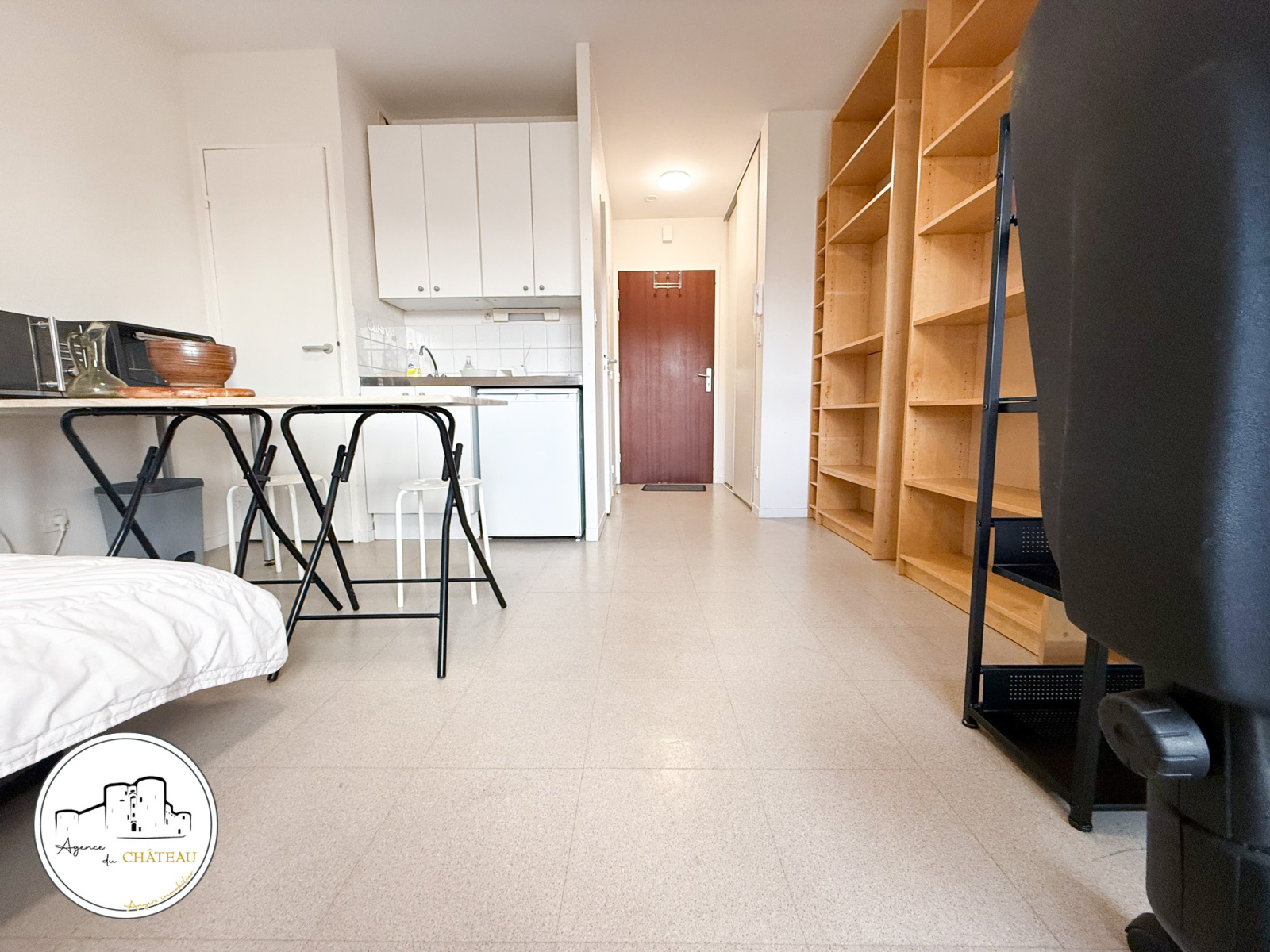Studio meublé de 21m² en rez-de-chaussée quartier Strabourg/Etanduère sur Angers.Place de parking privative. Honoraires de location part locataire : 225€TTC. Contactez l'AGENCE DU CHÂTEAU au 02.41.24.24.25