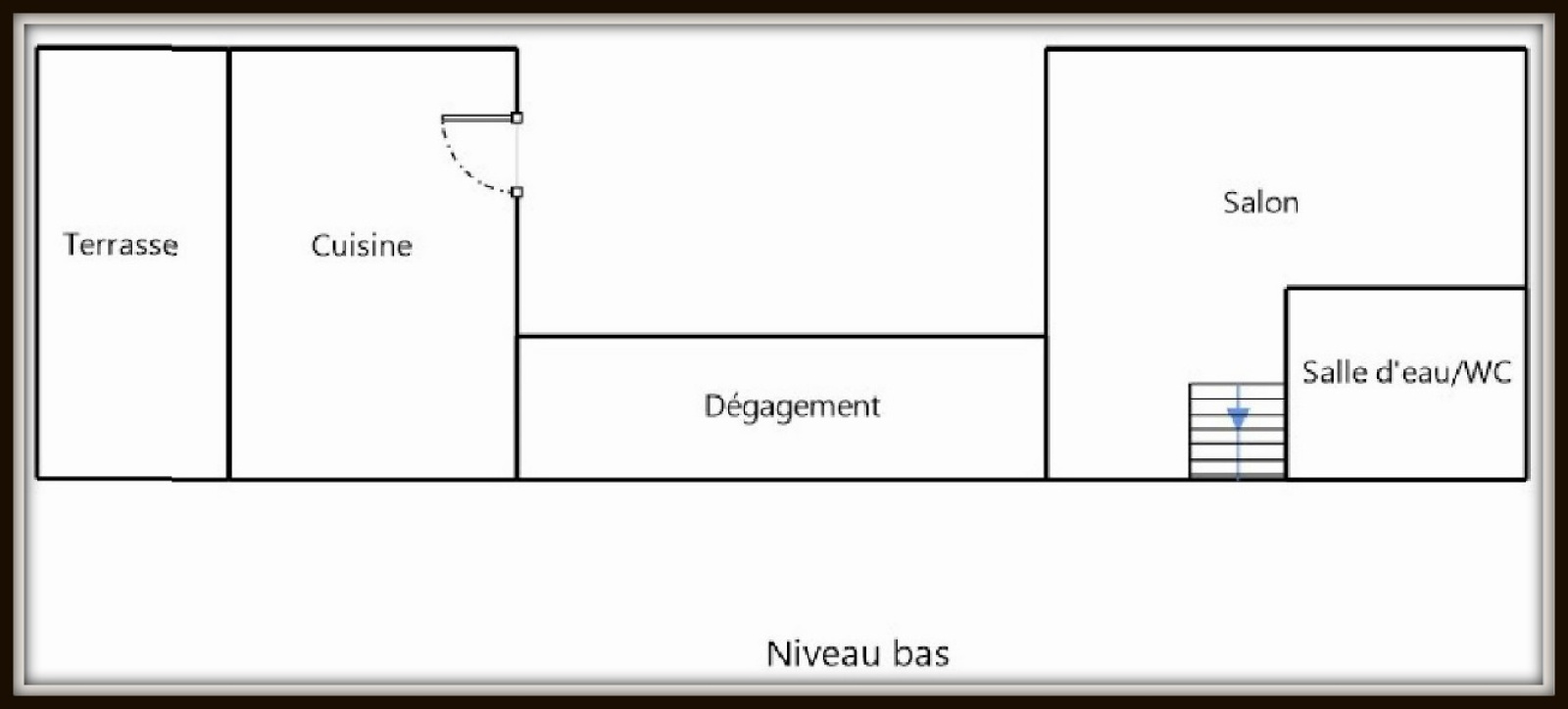 Ce logement vous offre une cuisine équipée et moderne ouverte sur une terrasse de 14 m², parfaite pour des moments conviviaux en extérieur. Le salon, accueillant et bien agencé, ainsi qu'une salle d'eau avec WC se trouvent au premier niveau.