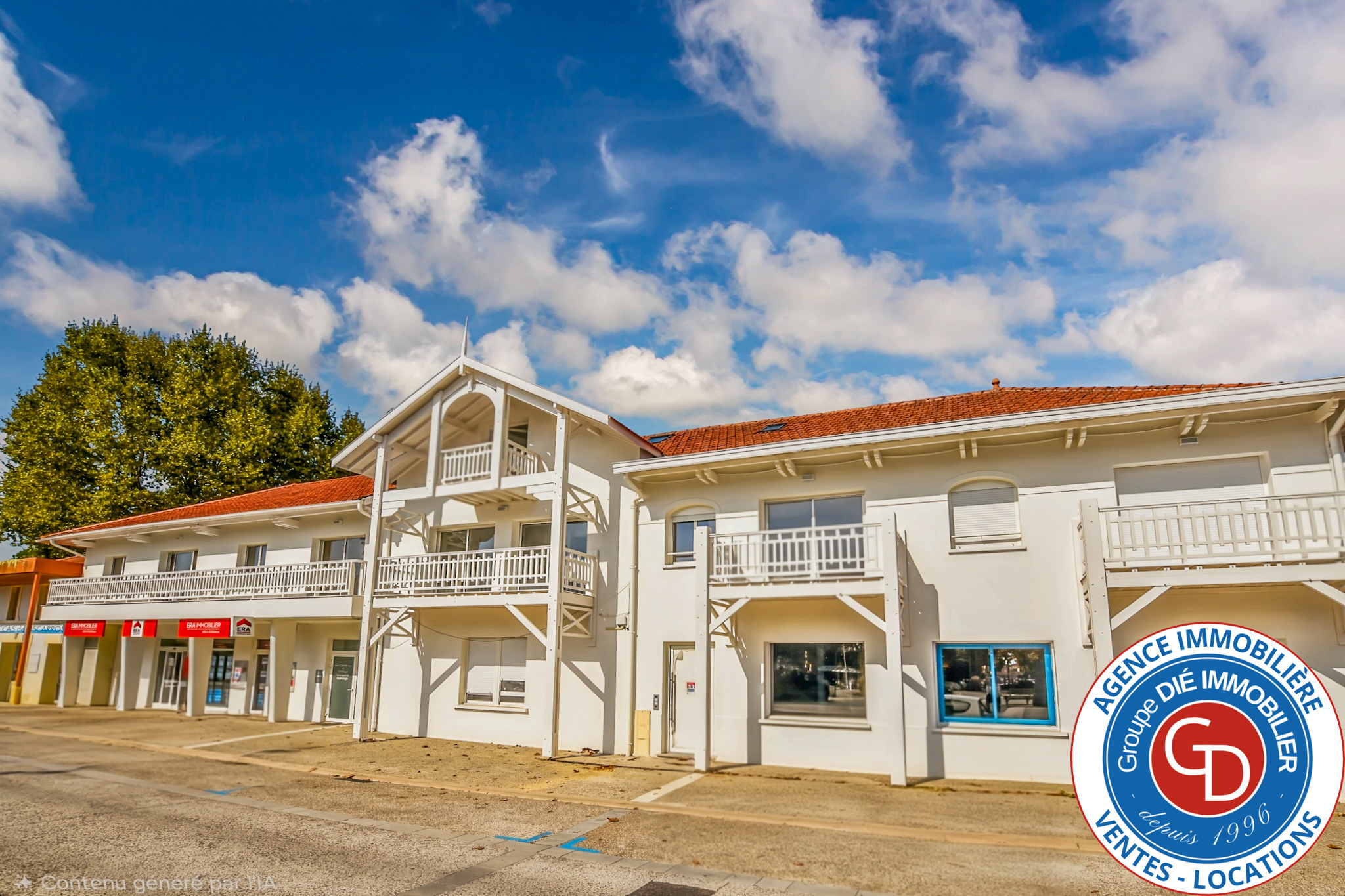 PAS D'HONORAIRES D'AGENCE - LOCATION VIDE À L'ANNÉE A Biscarrosse Bourg sur place de l'Eglise, Bel appartement de type 1 avec cabine au rez-de-chaussée d'une petite résidence de 6 appartements.