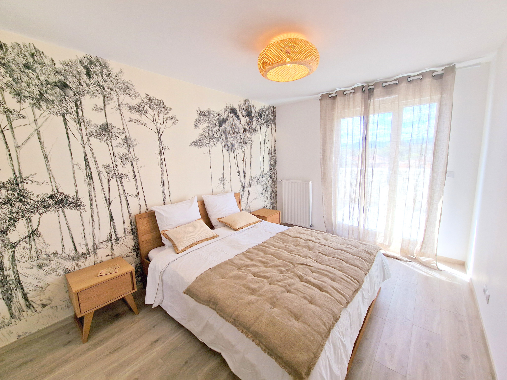 Toutes les fenêtres sont équipées de voilage et/ou rideaux.