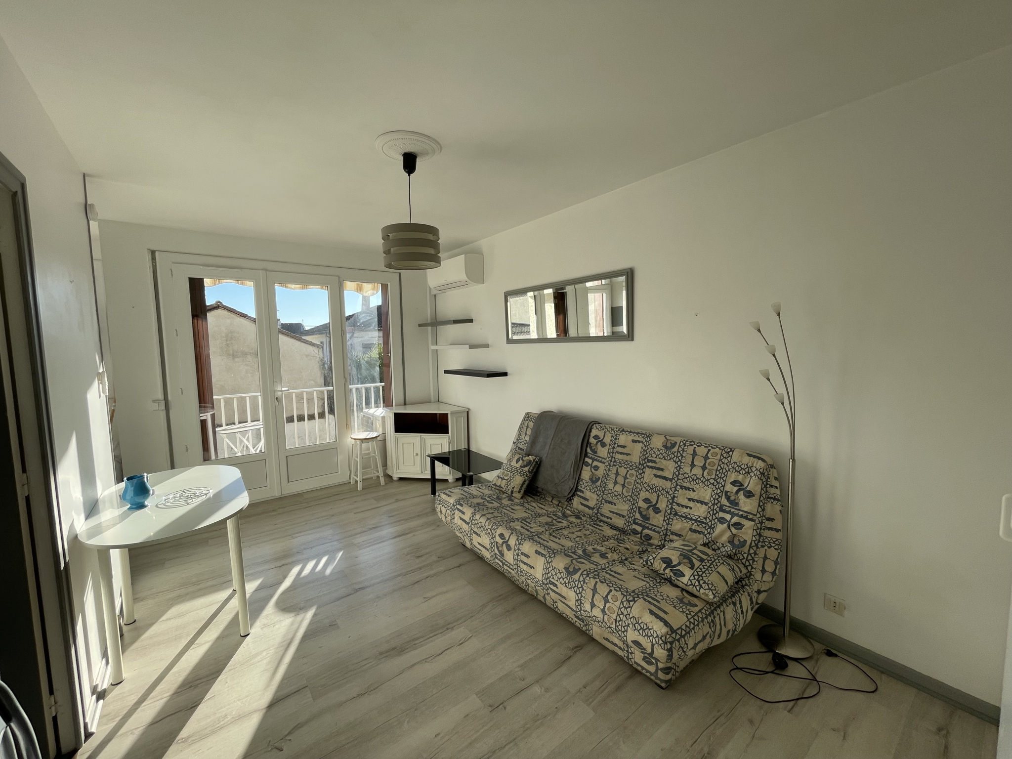 Joli appartement meublé, très lumineux avec cuisine américaine, jolie pièce de vie avec balcon, salle de bain avec toilettes.