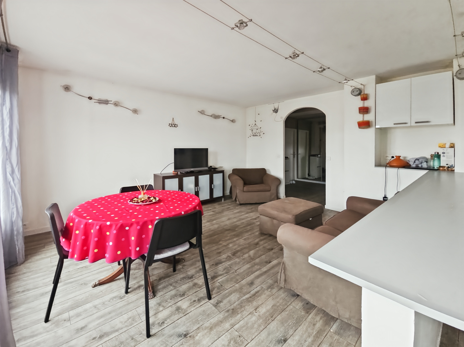 Bénéficiez également de l'usage de toutes les parties communes de cet appartement d'environ 68,32 m² : Une grande entrée avec rangement intégré, un séjour avec cuisine ouverte, une salle de bains, un WC indépendant avec espace machine à laver et un débarras.Â