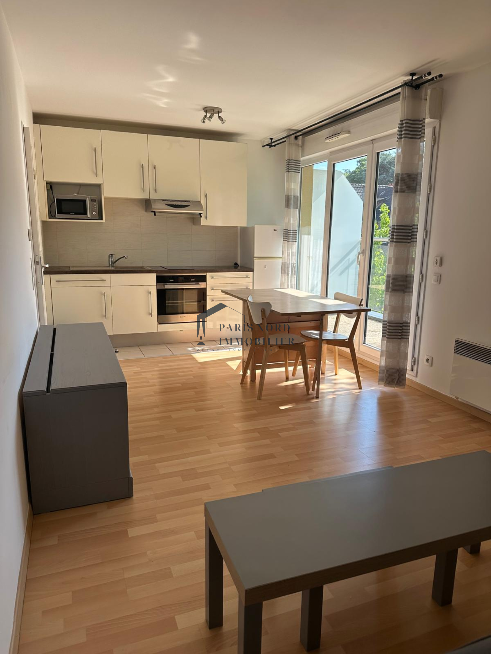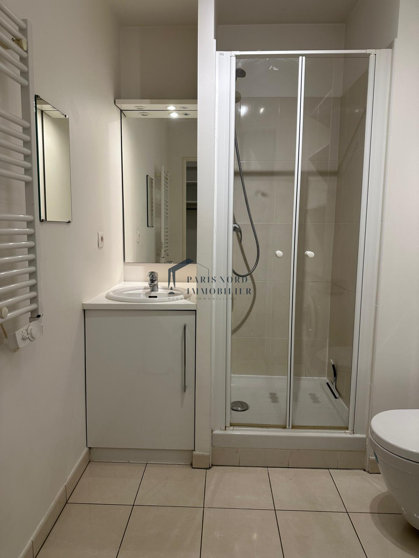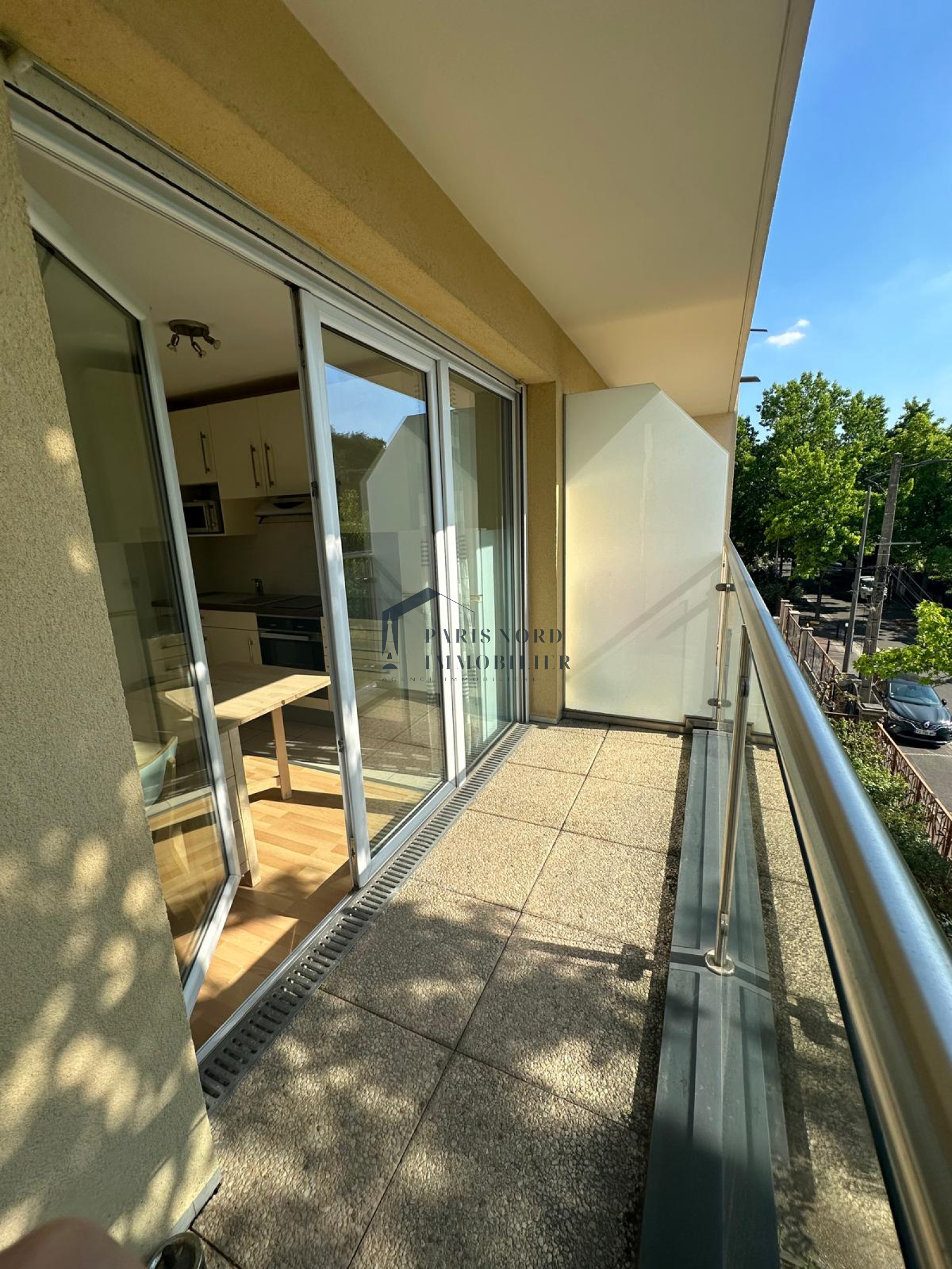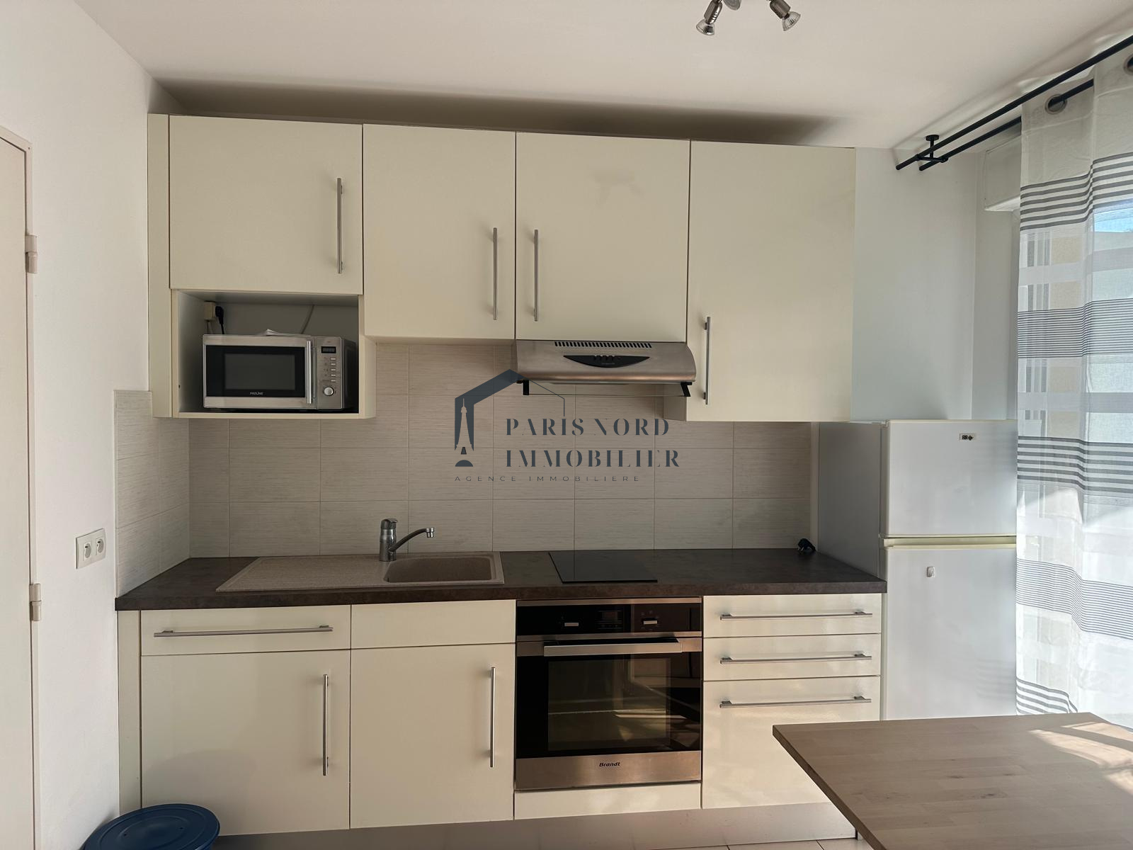 L'Agence PARIS NORD IMMOBILIER vous propose dans une résidence de standing sécurisée de 2006, un Studio meublé de 27,45 m², situé au 2ème étage d’un immeuble calme et sécurisé au pied de la gare RER. Il comprend une Entrée, une Salle d'eau avec WC, une Cuisine équipée ouverte sur une Pièce principale lumineuse donnant sur un balcon.