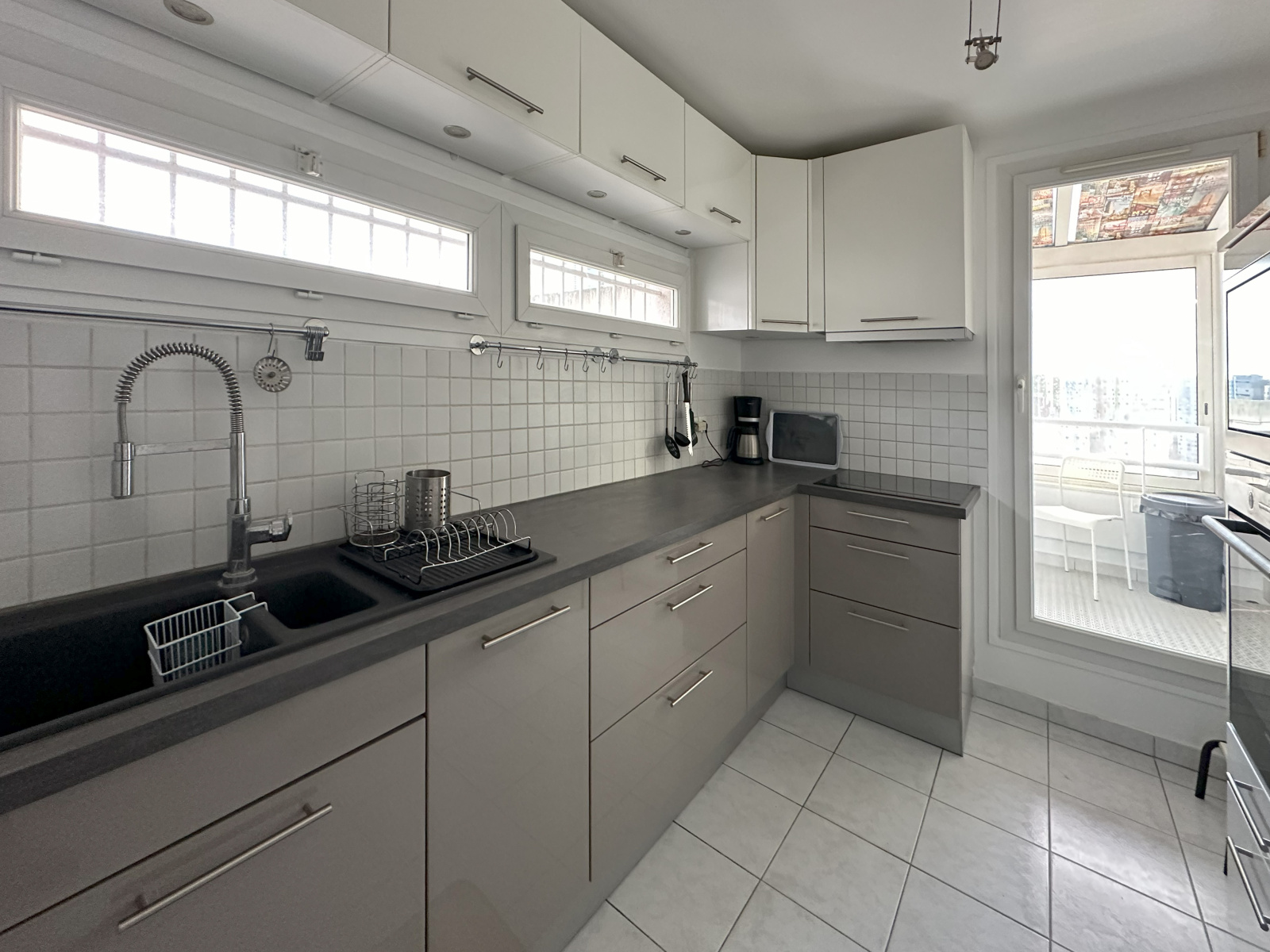 - au 19ème étage : d’un grand séjour de 36 m² avec rangements et d’une cuisine meublée et équipée, qui donnent sur une véranda exposée au sud-est.