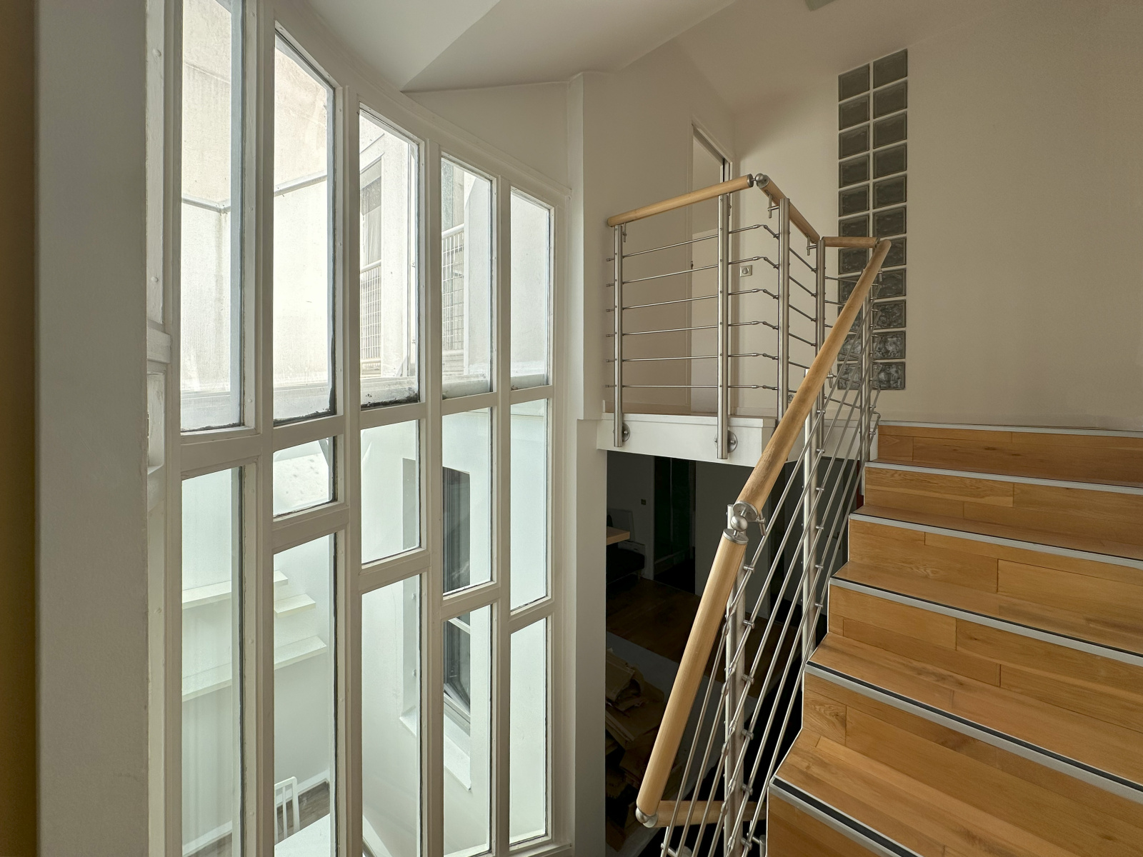 Les colocataires se partageront 53,73 m² de parties communes d'un duplex refait à neuf sur 4 demi-niveaux, comprenant la cuisine meublée et équipée, le séjour, la salle à manger, une salle de bain, une salle d'eau et des wc séparés, la chambre 5 bénificie de sa propre salle d'eau avec WC. Une buanderie non comprise dans cette surface restera à la disposition de la femme de ménage