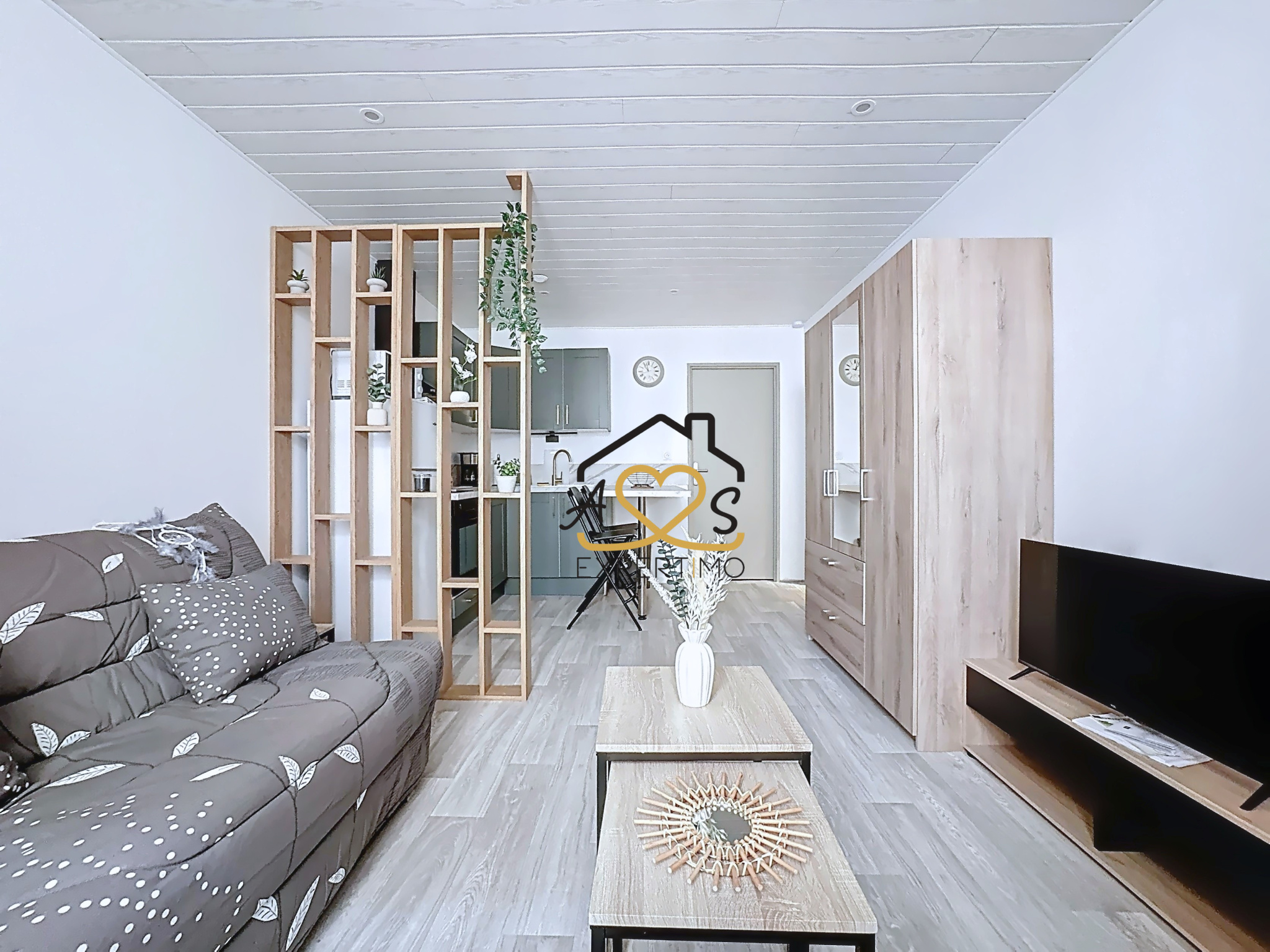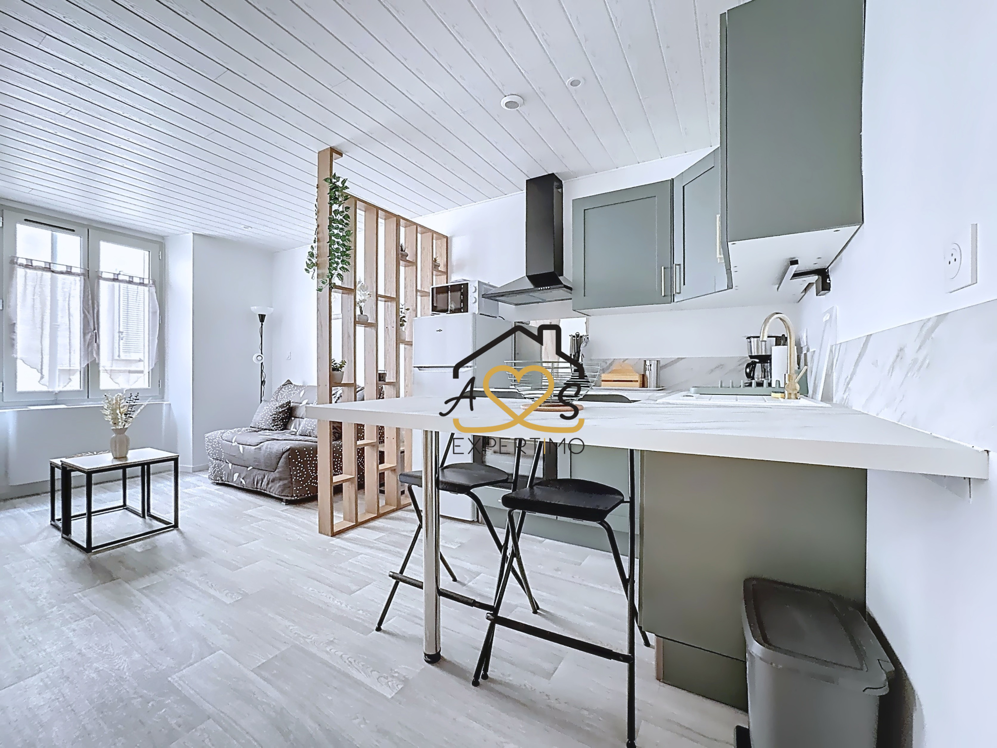 Alison et Sébastien vous proposent à la location, au coeur de Billom ( 1 Rue de l’Etezon), ce studio meublé entièrement rénové avec goût ( menuiseries, isolation, électricité, cuisine, salle d’eau..) de 21,60 m2 avec local commun de 12 m2