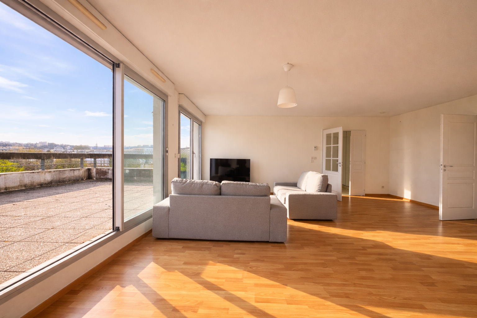 L’atout majeur de ce bien réside dans sa magnifique terrasse de 80 m², qui entoure l’appartement et prolonge chaque espace de vie. Véritable rooftop sécurisé, elle offre une vue totalement dégagée, sans vis-à -vis, créant un environnement exceptionnel et rare sur le secteur.