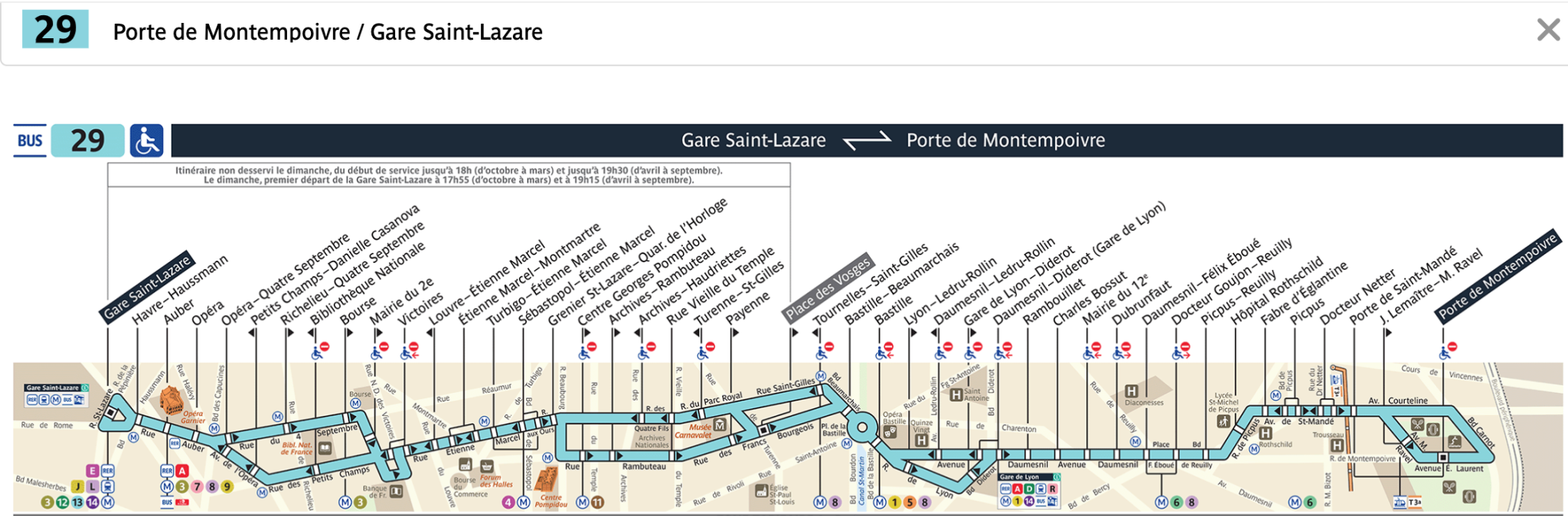 29 ; de Gare St Lazare à la Porte de Montempoivre en passant par la Place des Vosges, Mairie du 12ème, Picpus