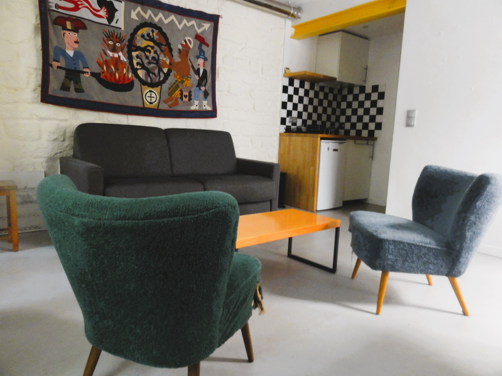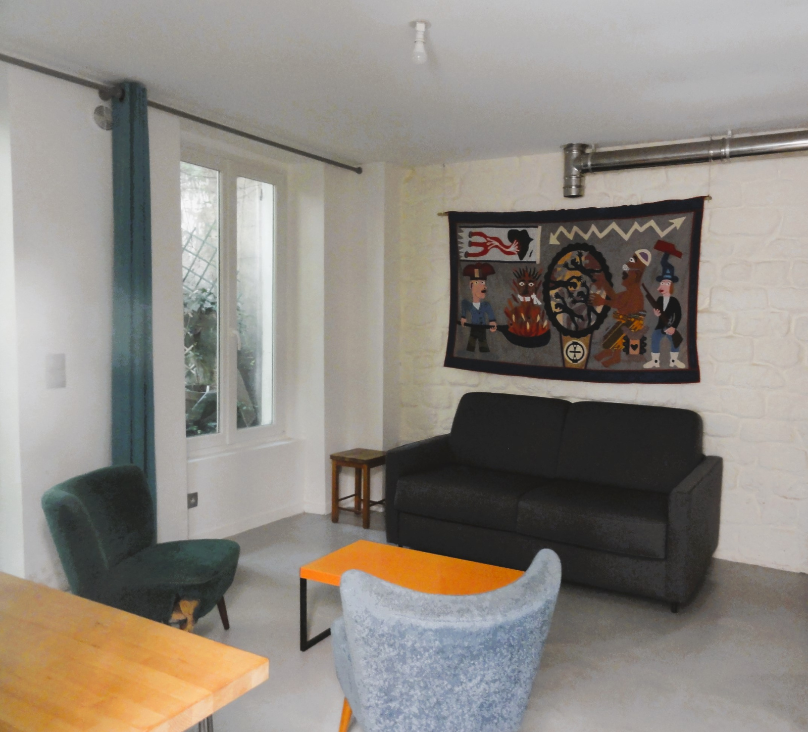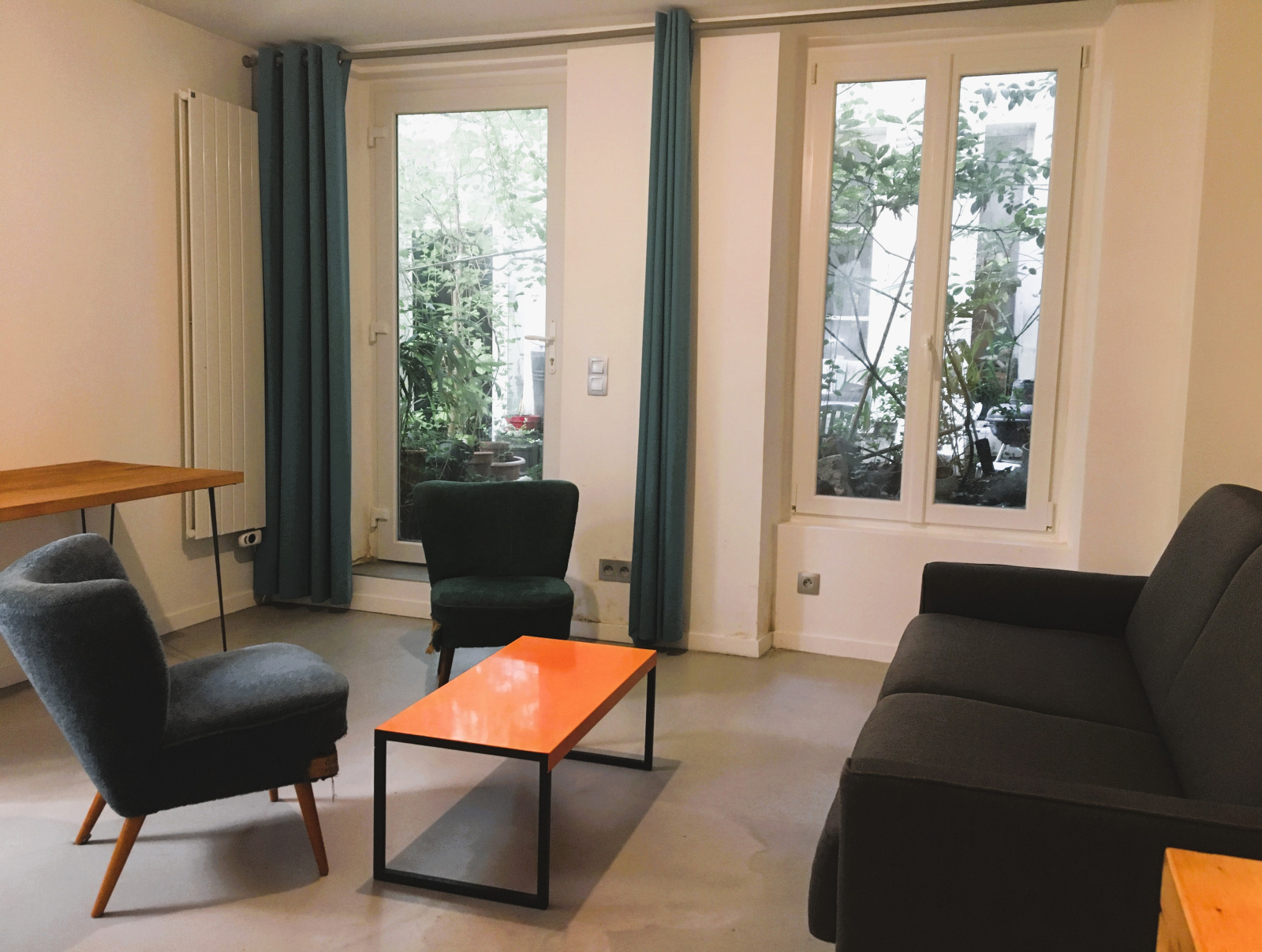 Paris 20ème, rue de Belleville, au calme d’une cour jardin, un studio meublé de 18 m², situé au rez-de-chaussée, en très bon état, coin cuisine équipée, salle de douche avec WC. Il bénéficie de la luminosité de 3 portes-fenêtres. Chauffage électrique. Agréments : Quartier vivant, proximité des transports, des commerces, bars et restaurants. Calme absolu, verdure. Métro Belleville (Lignes 2 et 11).