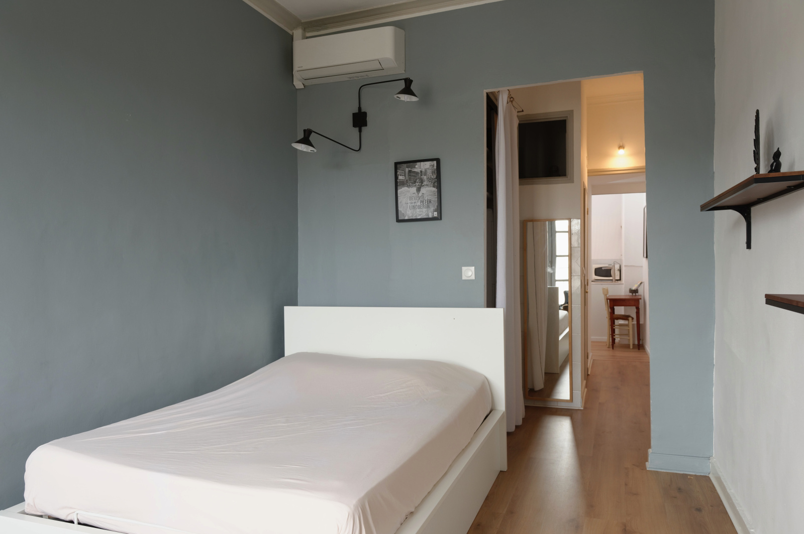 Entièrement rénové à neuf, le studio est en parfait état. Il se compose d’une pièce principale avec nombreux rangements, d’une cuisine entièrement équipée (four, plaques, réfrigérateur, congélateur) et d’une salle d’eau avec douche, WC, meubles et miroirs. La literie complète est fournie.
