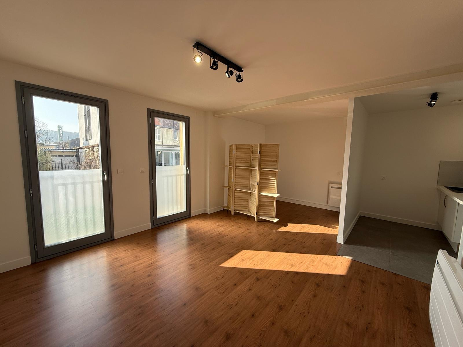 Il est composé d'une entrée avec placard, d'une salle d'eau avec wc, une cuisine ouverte aménagée, et d'une belle piece de vie.