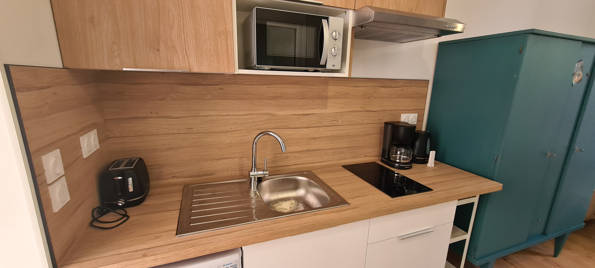 A proximité immédiate du métro, à 50 mètres de la ligne B permettant d'accéder directement aux différentes universités, situé dans un immeublé récemment réhabilité, au calme, charmant studio loué meublé de 17,7 m² environ comprenant une pièce de vie avec canapé-lit, coin cuisine équipée, salle d'eau avec WC.