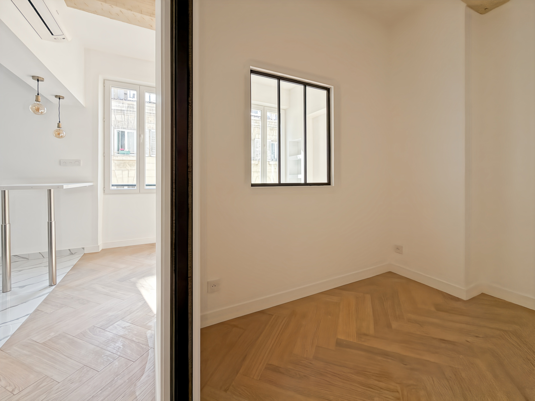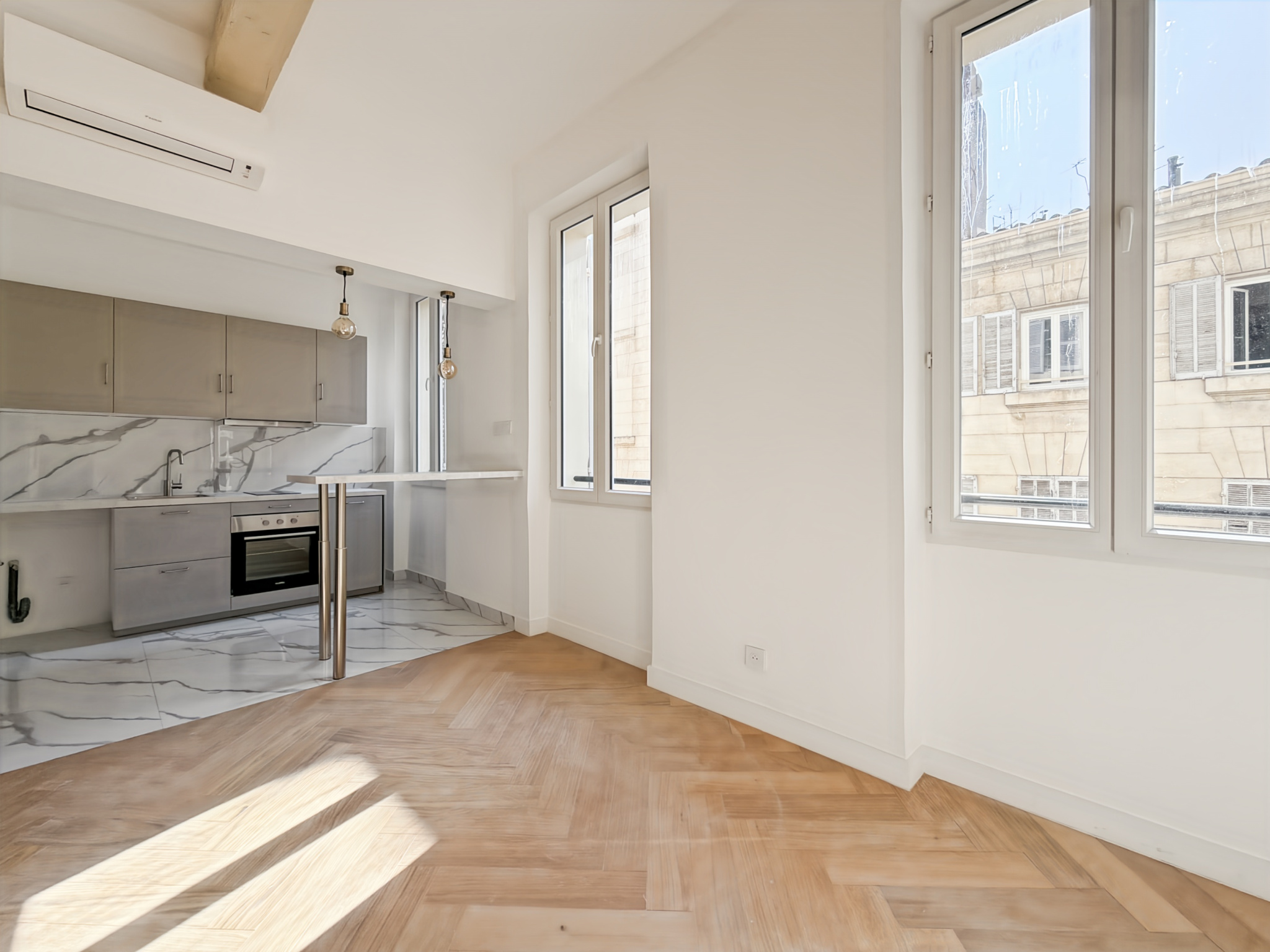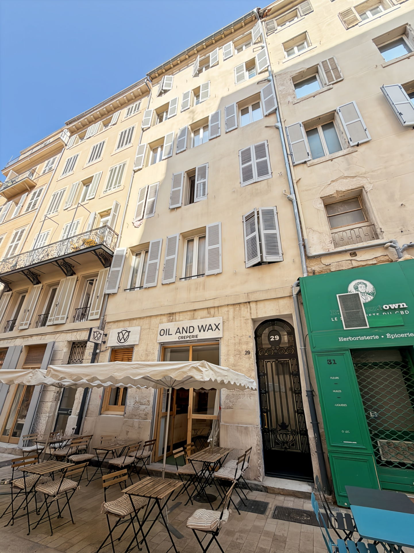 À moins de 100 mètres du Vieux-Port, dans la rue Glandevès, découvrez ce petit T2 (chambre de 7,3m2) entièrement rénové avec des matériaux de qualité, situé au 3ème étage d’un immeuble rénové en totalité :