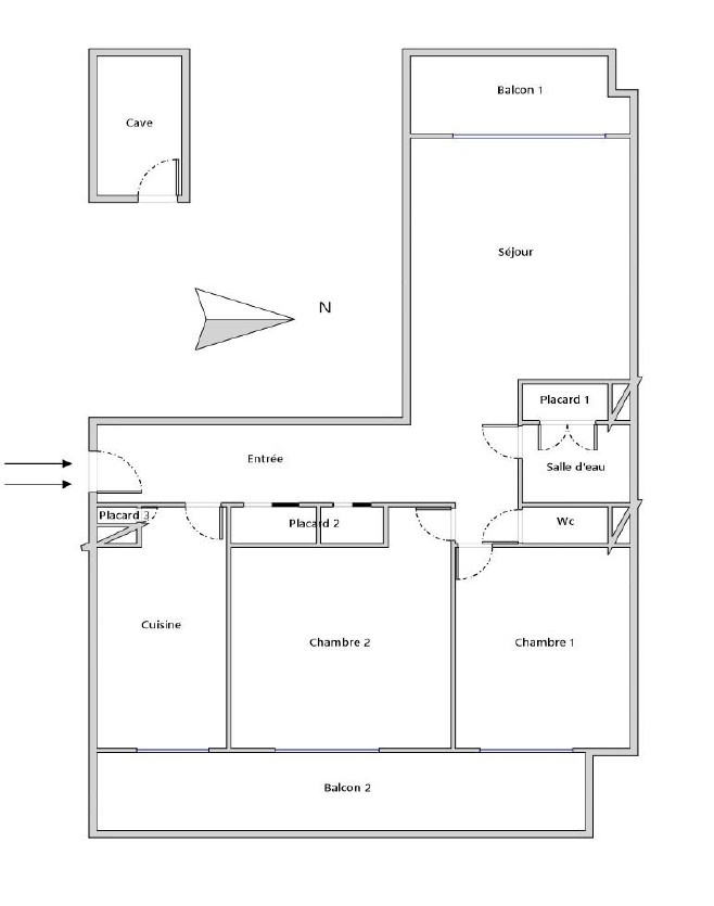 SAINT PIERRE---T3 traversant---2 Balcons---Cave